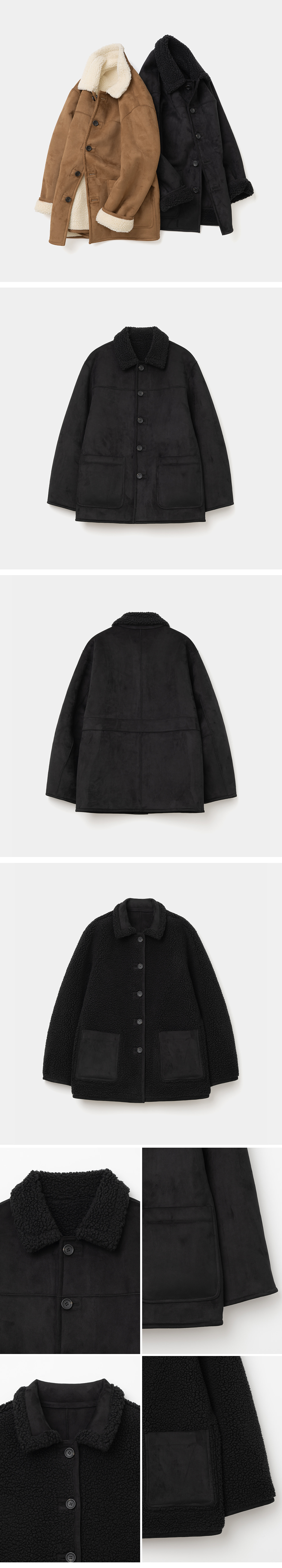 유니폼 브릿지 리버서블 시어링 코트 블랙