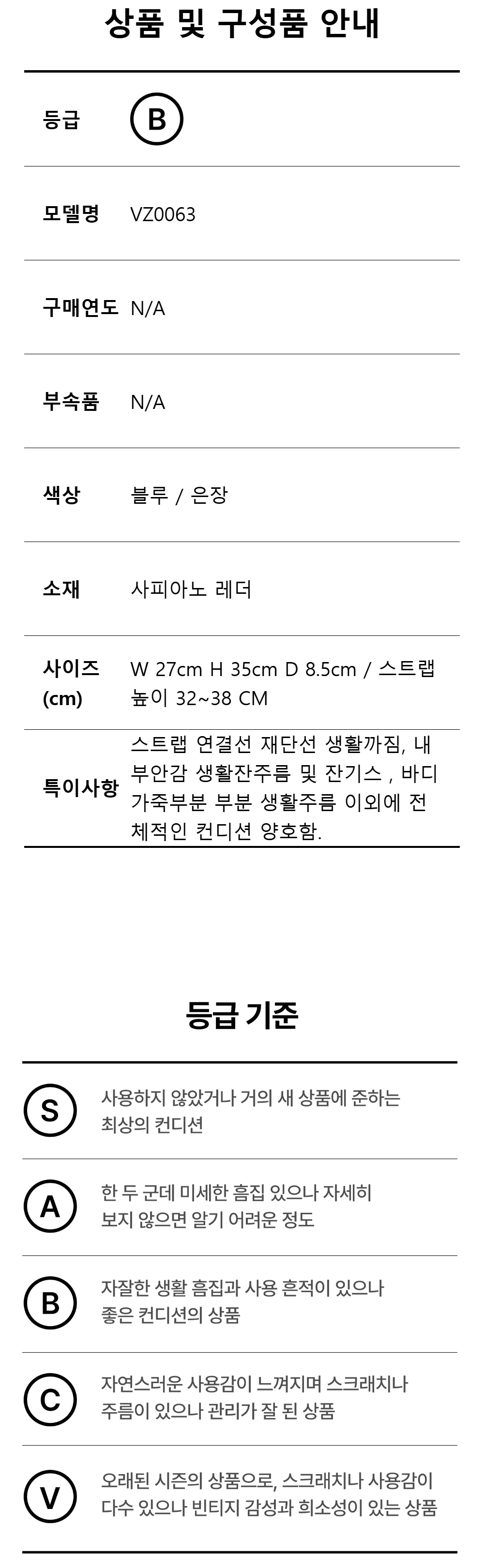 프라다 VZ0063 블루 레더 사피아노 은장로고 백팩