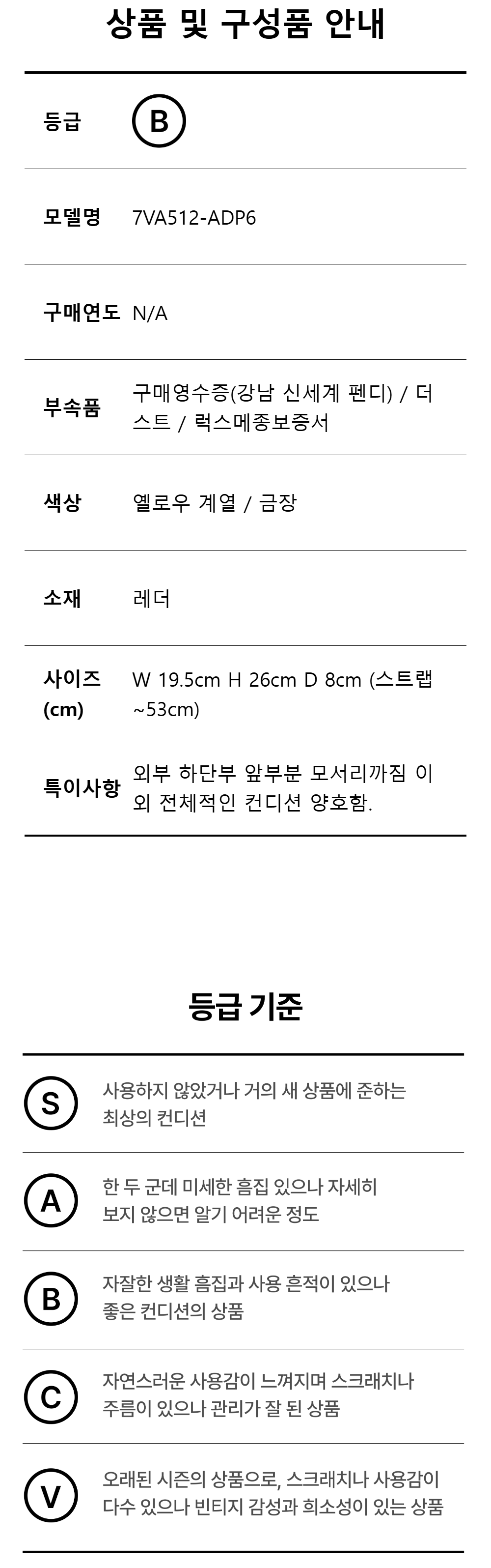 펜디 7VA512-ADP6 팩 스몰 옐로우 컬러 쇼핑 토트백, 스트랩