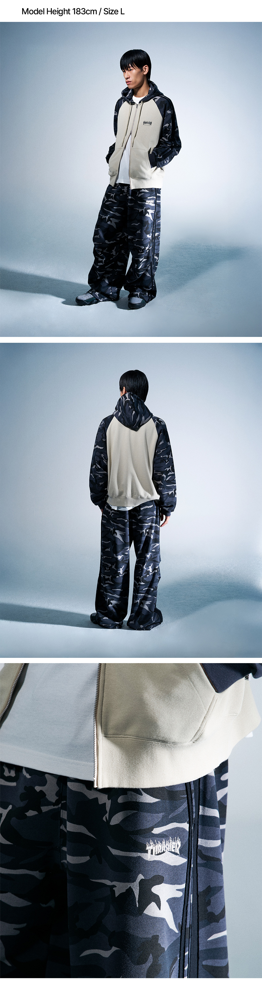 트레셔 플레임 워시드 트랙 스웻팬츠 카모