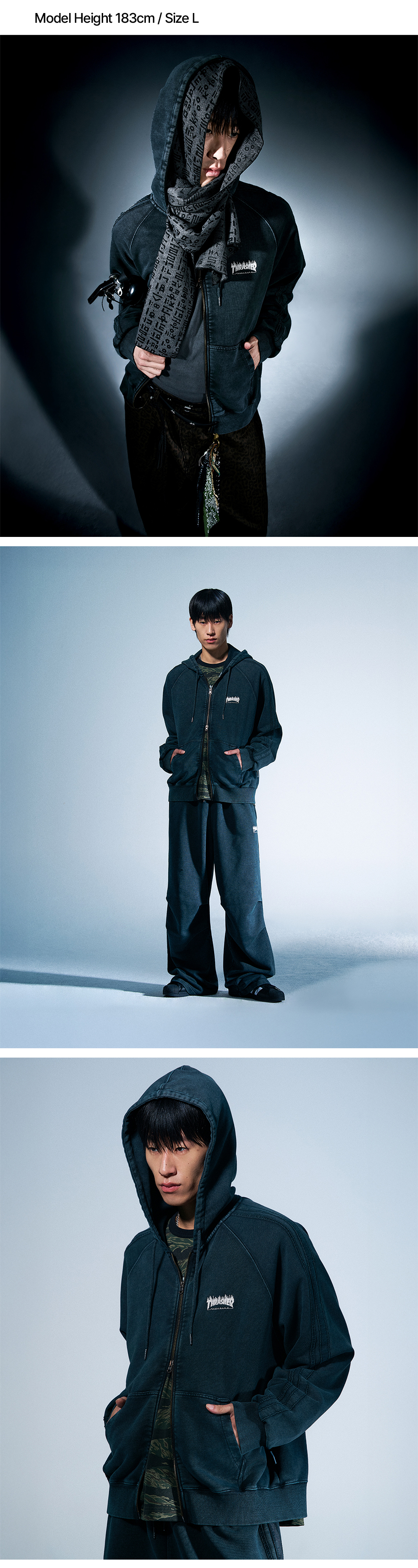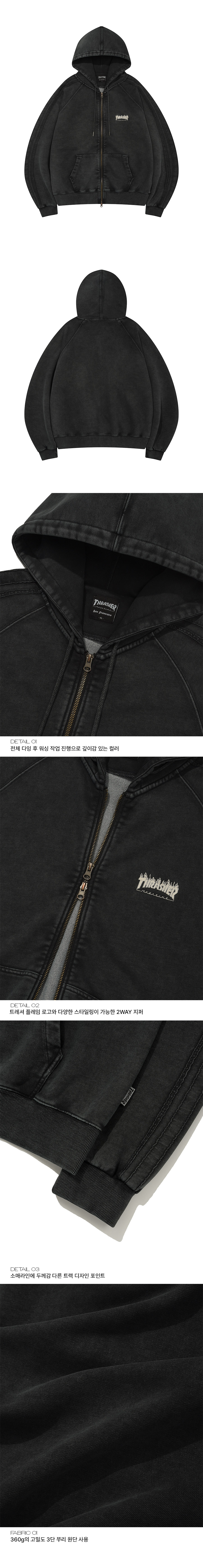 트레셔 플레임 워시드 트랙 후드집업 블랙