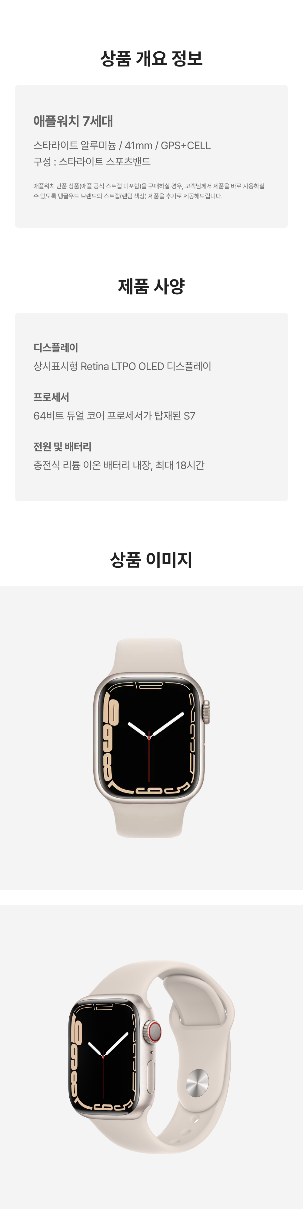 [A등급] 리퍼비시 애플워치 7 41mm 셀룰러 스타라이트 알루미늄 케이스 스포츠 밴드 스타라이트