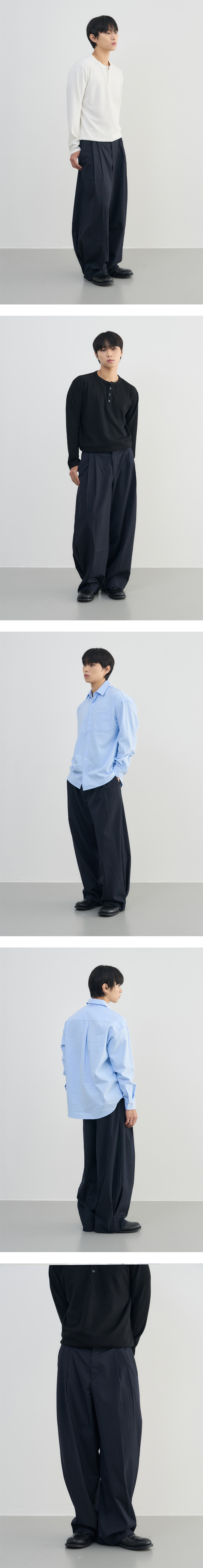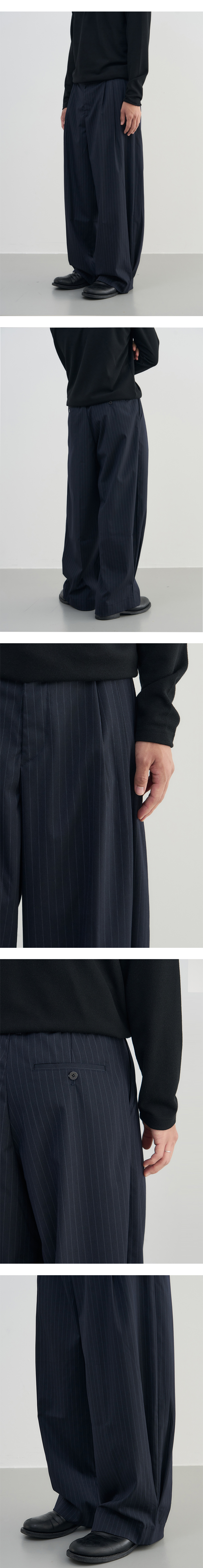 어레이드 인버티드 플리츠 스트라이프 슬렉스 다크 네이비