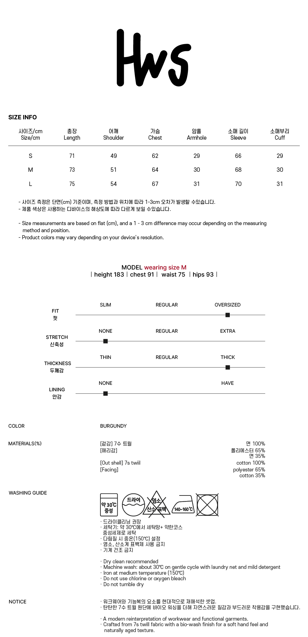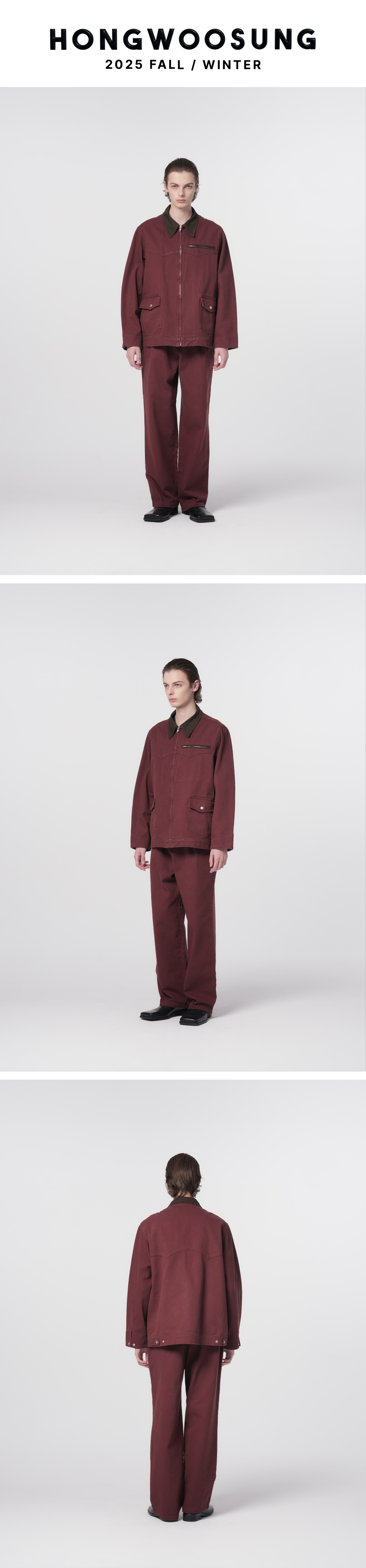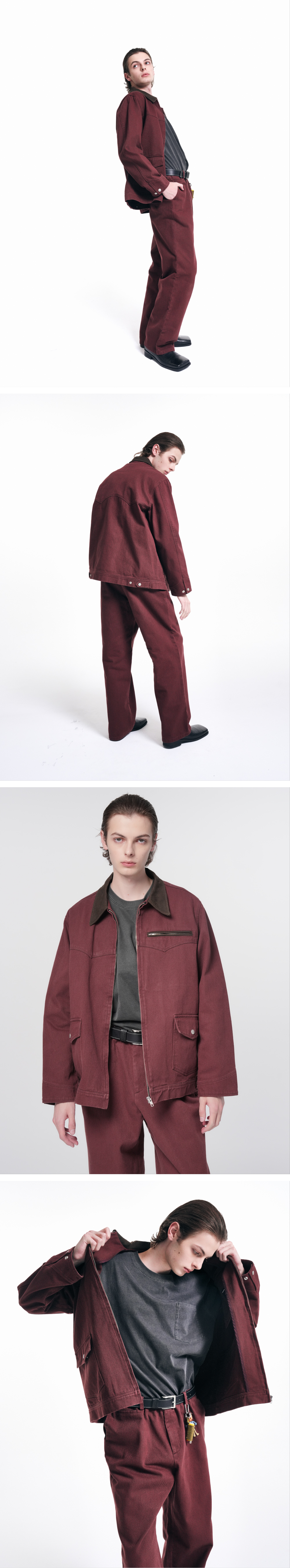 홍우성 유틸리티 트윌 코튼 집업 자켓 버건디
