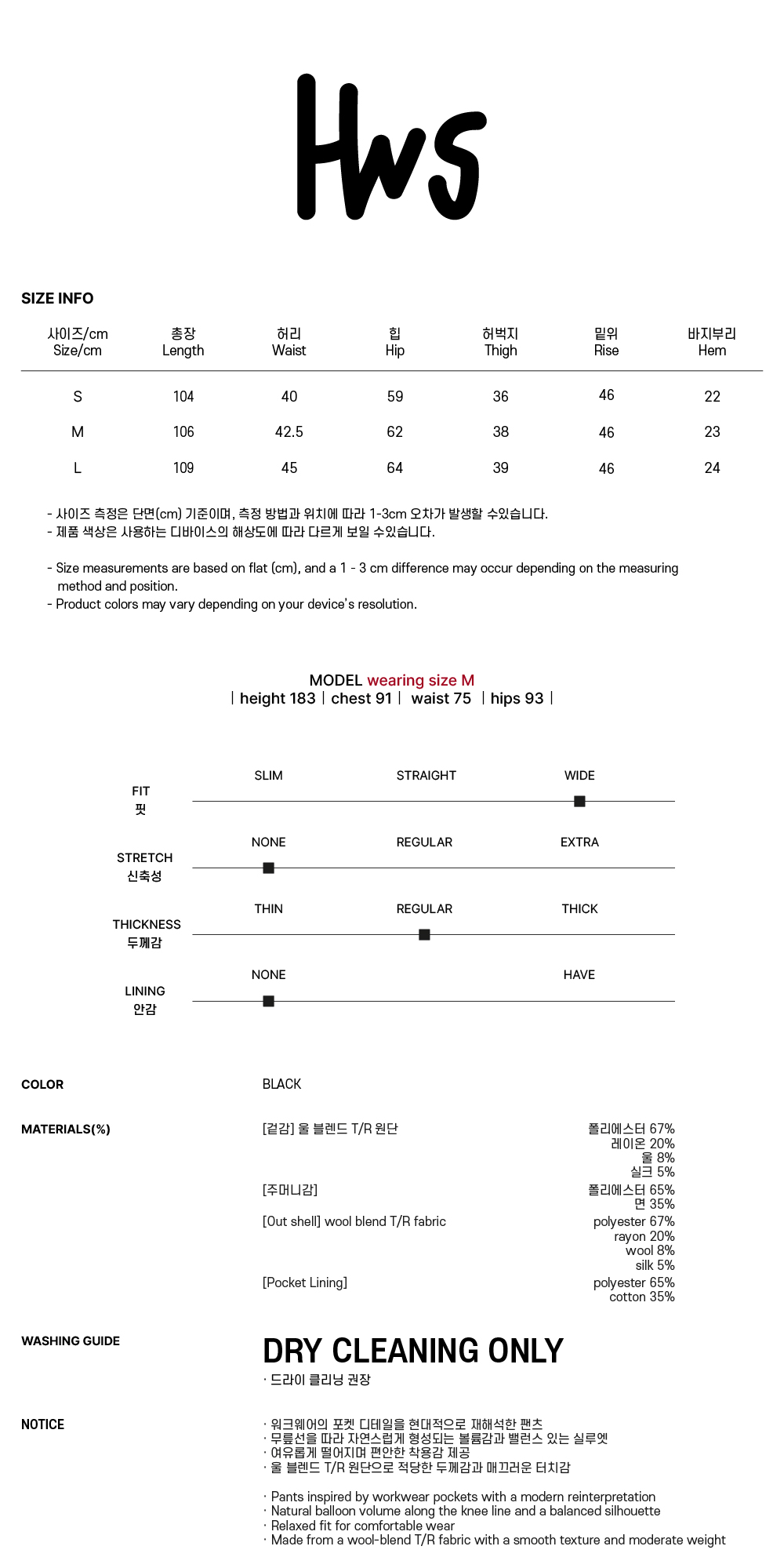 홍우성 툴백 와이드 트라우저 블랙