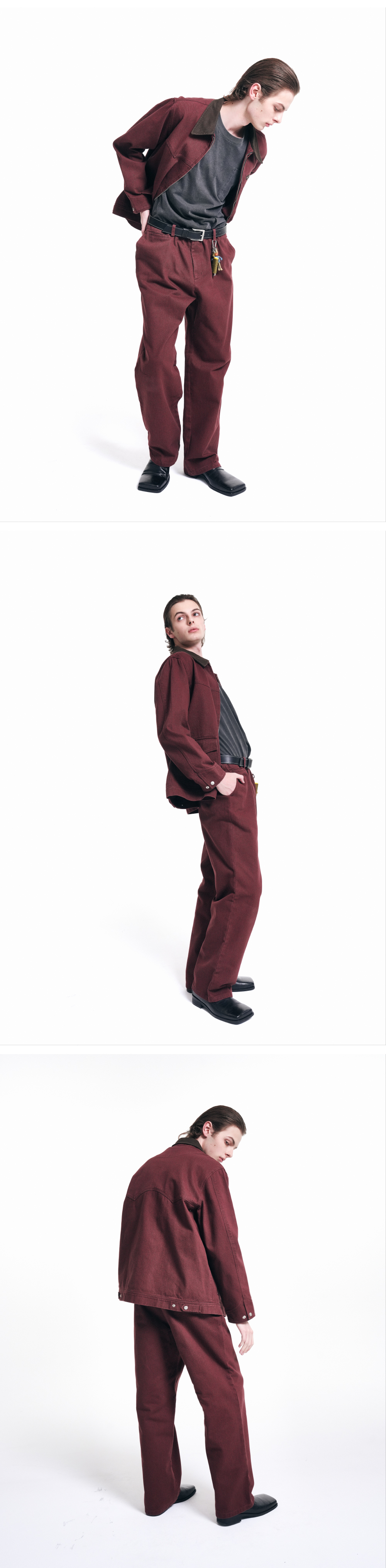 홍우성 워시드 트윌 코튼 트라우저 버건디