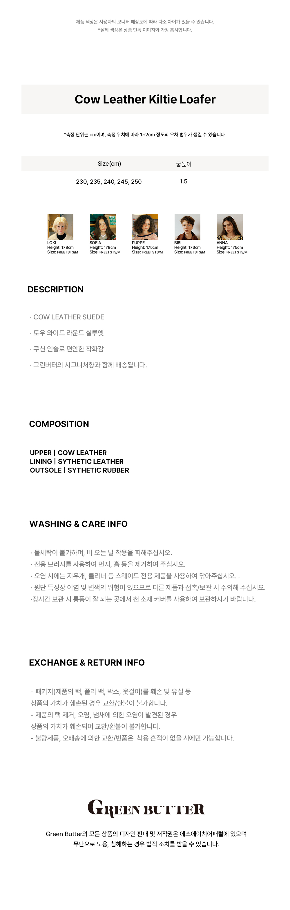 그린버터 카우 레더 클리테 로퍼 샌드 베이지