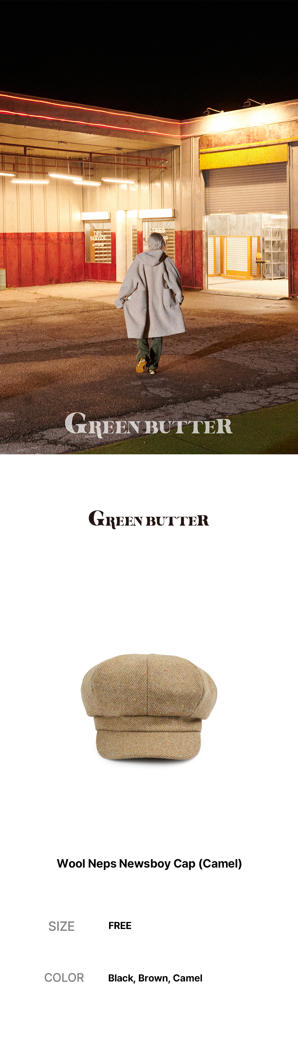 그린버터 울 넵스 뉴스보이 캡 카멜