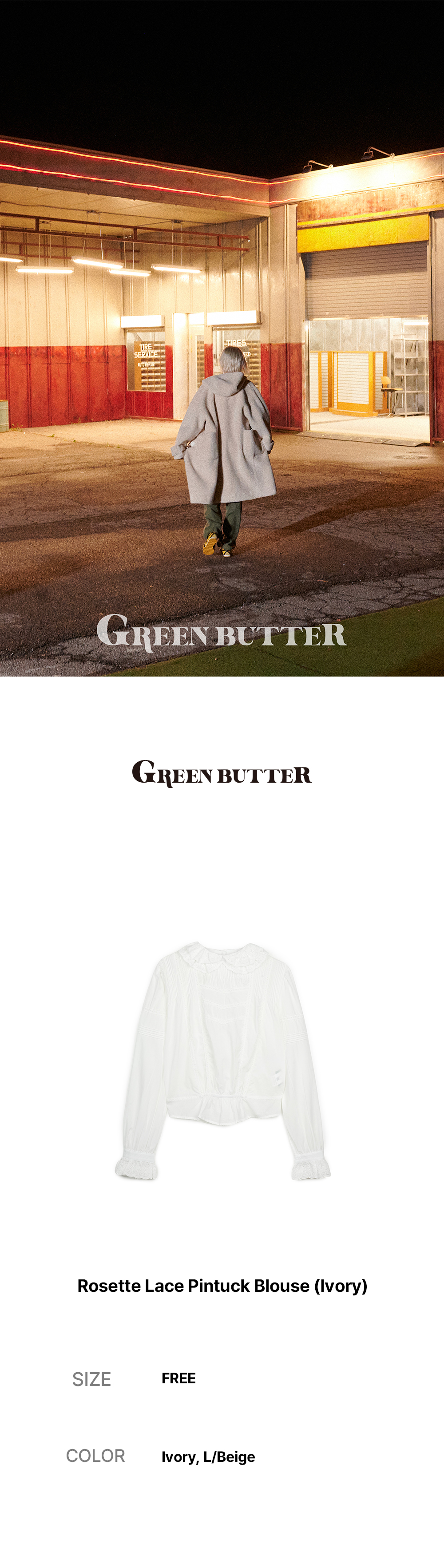 그린버터 로세트 핀턱 블라우스 아이보리