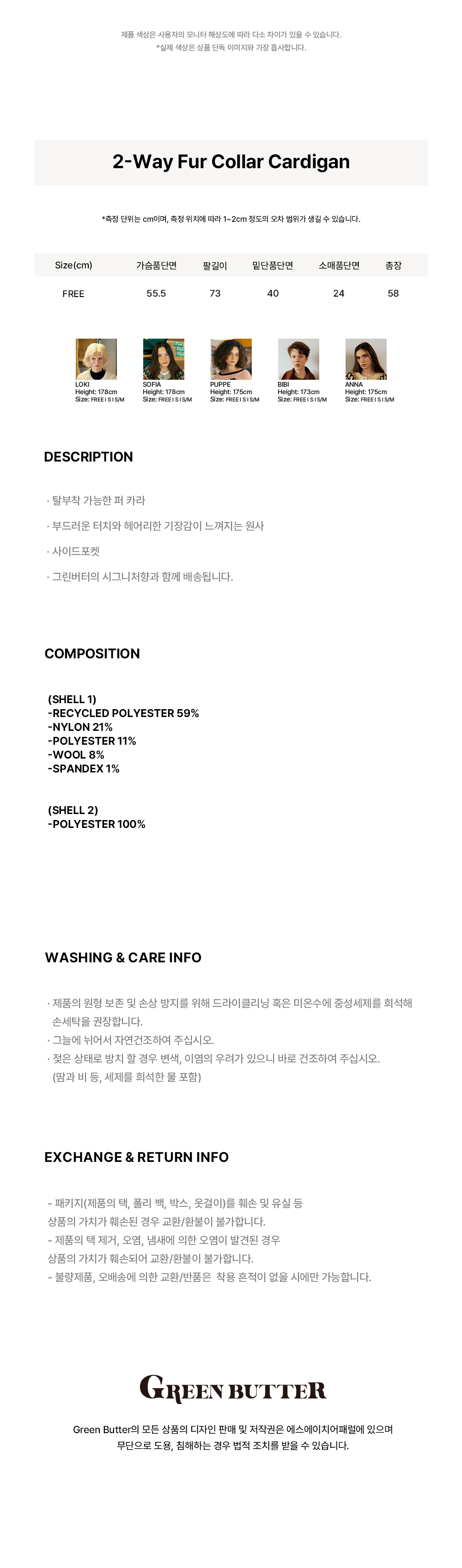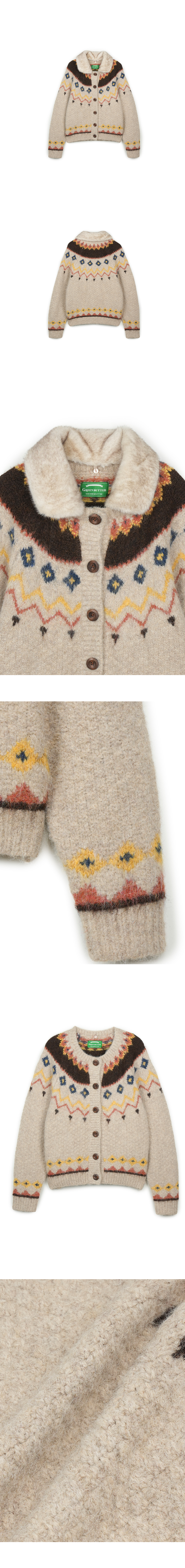 Greenbutter 2-Way Fur Collar Cardigan Beige