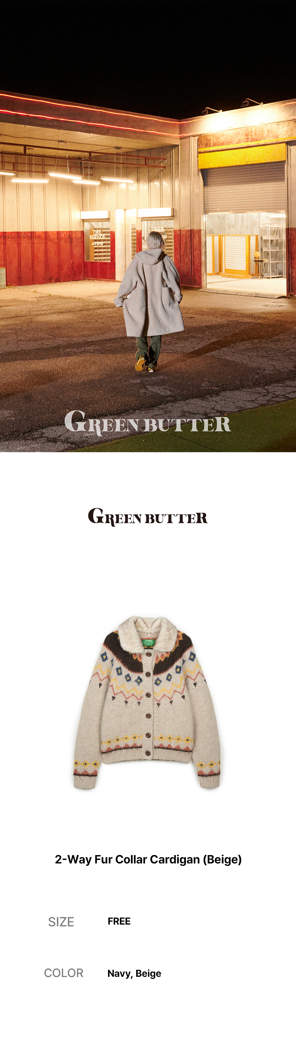 그린버터 투 웨이 퍼 칼라 가디건 베이지