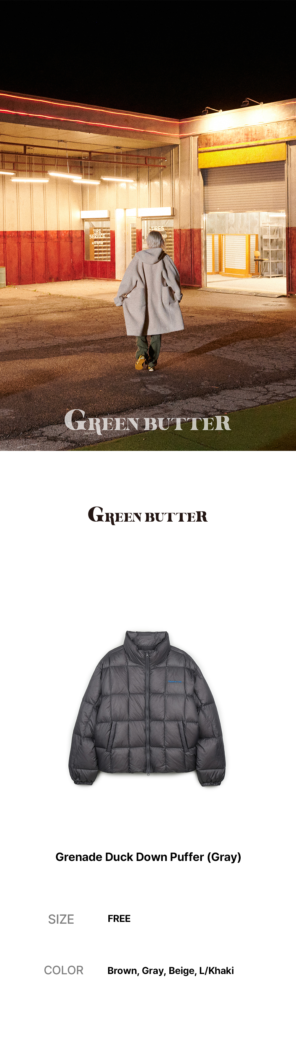 그린버터 그랜드 덕 다운 푸퍼 그레이