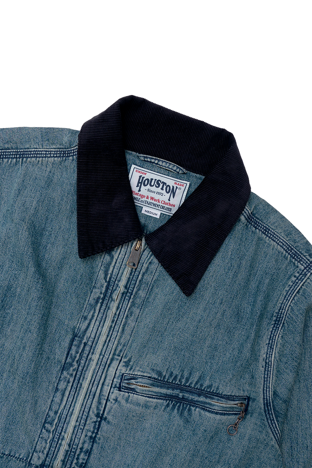Houston Japan 51485 Denim Zip Work Jacket - Bleach 8온스 슬라브 데님을 사용한 다소 짧은 기장감의 ZIP 워크 재킷입니다. 트리플 스티치의 견고한 제작으로 퀄리티 있게 착용 가능합니다. 내부 포켓은 안감 없이 겉감에 스티치를 뚫고 벗겨진 커버 올과 같은 디자인을 채용한 것이 특징입니다. 여유가 있는 품, 기장, 두께의 트렌드적인 특징으로 이너 및 아우터로 범용성 좋게 활용 가능합니다. *Cotton 100% * 빛에 의한 제품의 색감 차이가 존재 할 수 있습니다. * Made In India