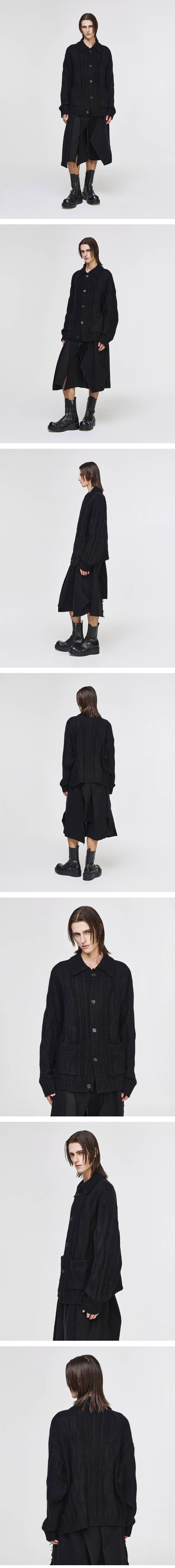 - SONGZIO 컬렉션 크롭 니트 자켓 - 헤어리한 모헤어 원사 - 7GG 케이블 조직으로 도톰하고 성근 니트 - 전면 아웃포켓 - 사이드 레더 라벨 포인트 - 크랍한 기장의 세미 오버 실루엣 FABRICATION MADE IN CHINA