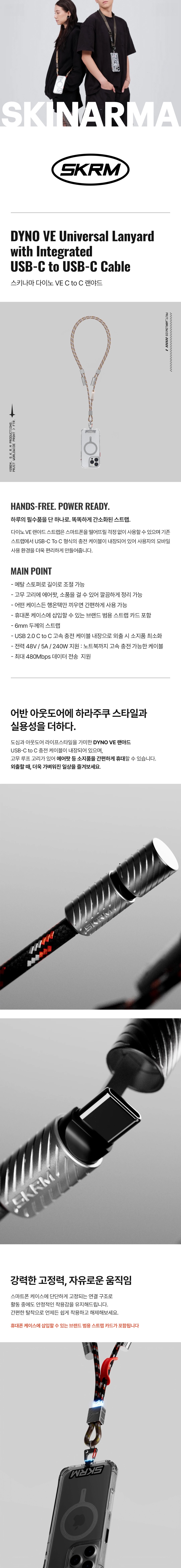 스키나마 다이노 VE 랜야드 C 타입 충전 케이블 라임그린