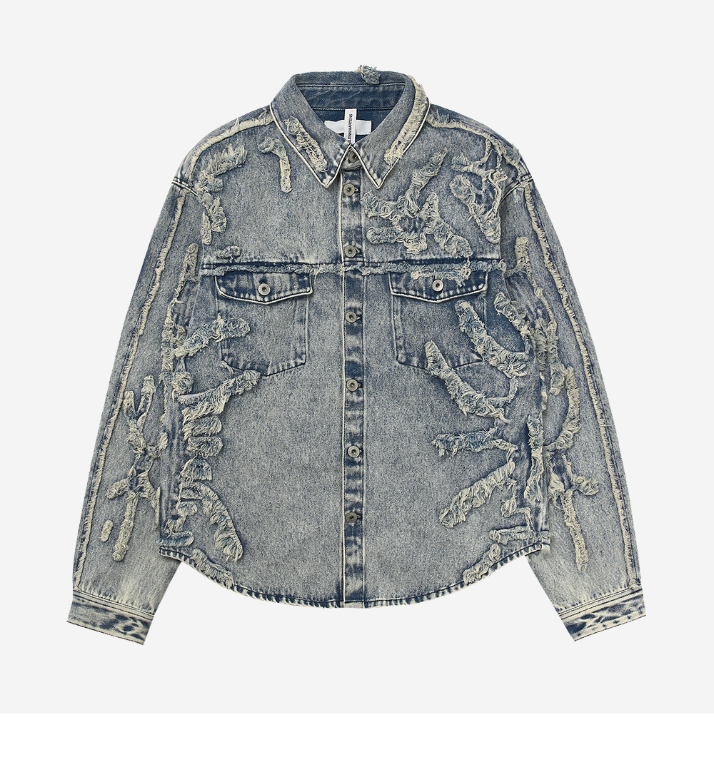 에이치앤엠 x 글렌 마틴스 디스트레스드 룩 데님 셔츠 라이트 데님 블루