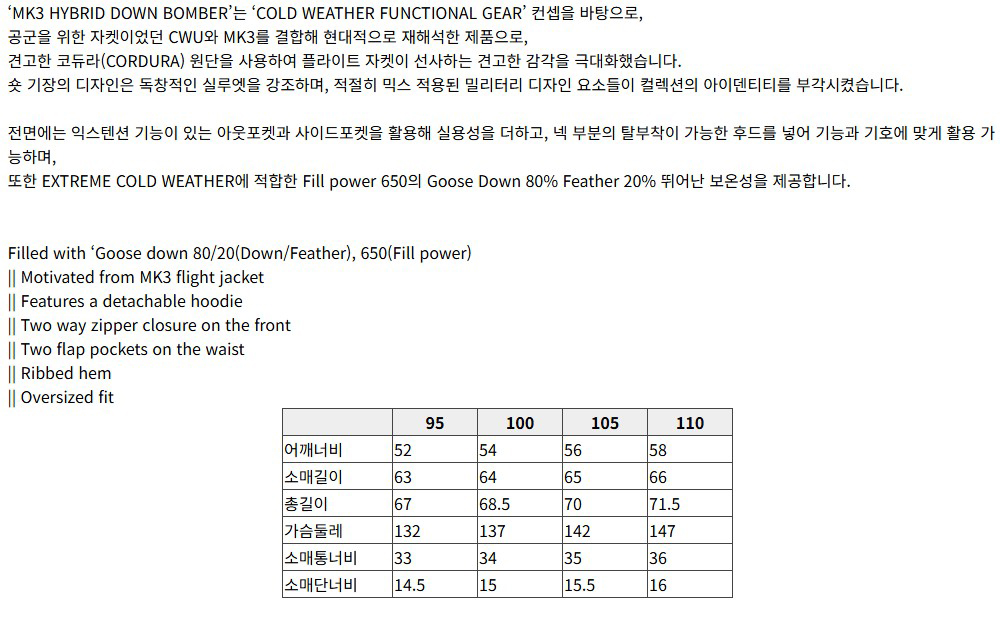 [KREAM 단독] 시리즈 X 언어펙티드 MK3 하이브리드 다운 봄버 블랙
