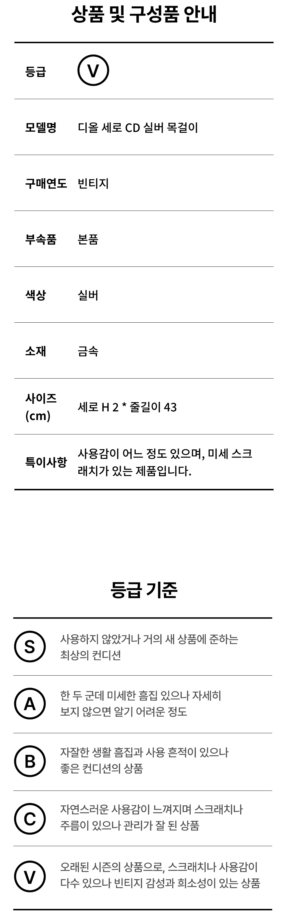 디올 버티컬 CD 실버 목걸이 A-B36252