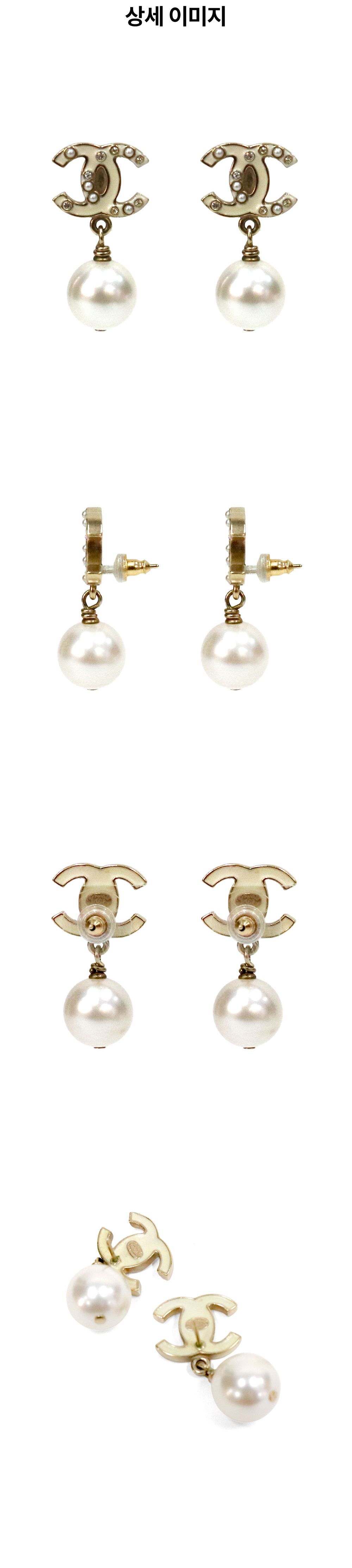 샤넬 아이보리 펄 드롭 CC 골드 귀걸이 A-B37686