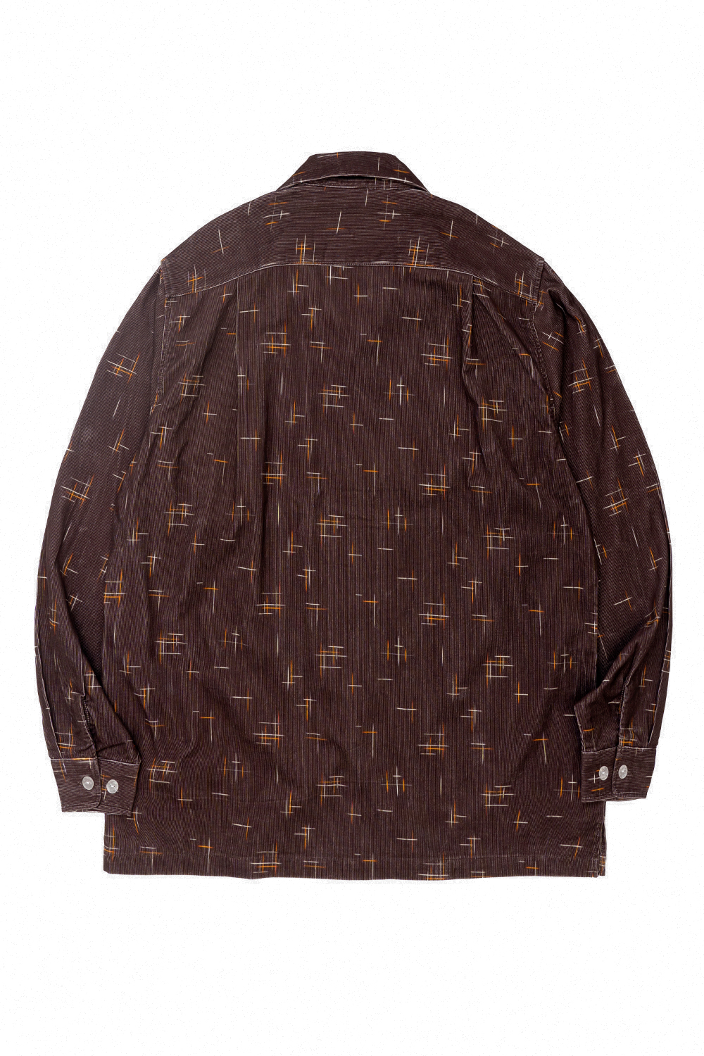 Univerd72 41262 Print Corduroy Shirt (KASURI) - Brown 16W 코듀로이 원단을 사용한 긴팔 셔츠입니다. 50년대 비백 무늬의 그래픽을 디지털 프린트로 보디 컬러마다 프린트한 것이 특징입니다. 버튼 같은 경우 조금 파인 모양인 클리어 버튼을 채용한 제품입니다. 단품 및 이너로도 포인트를 줄 수 있는 제품입니다. * Cotton 100% * 빛에 의한 제품의 색감 차이가 존재 할 수 있습니다. * Made in China