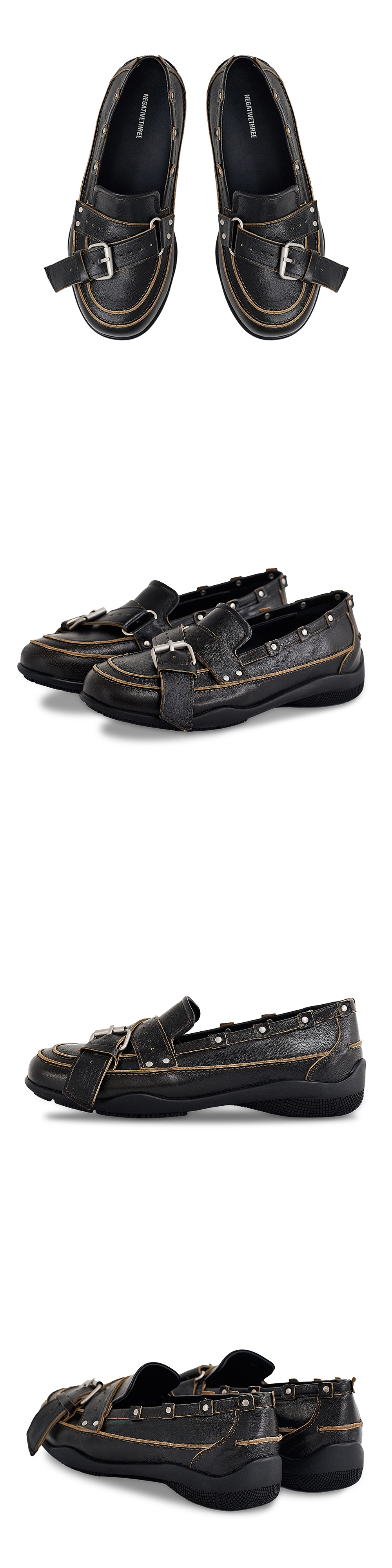네거티브쓰리 벨티드 스터드 로퍼 올리브 카키