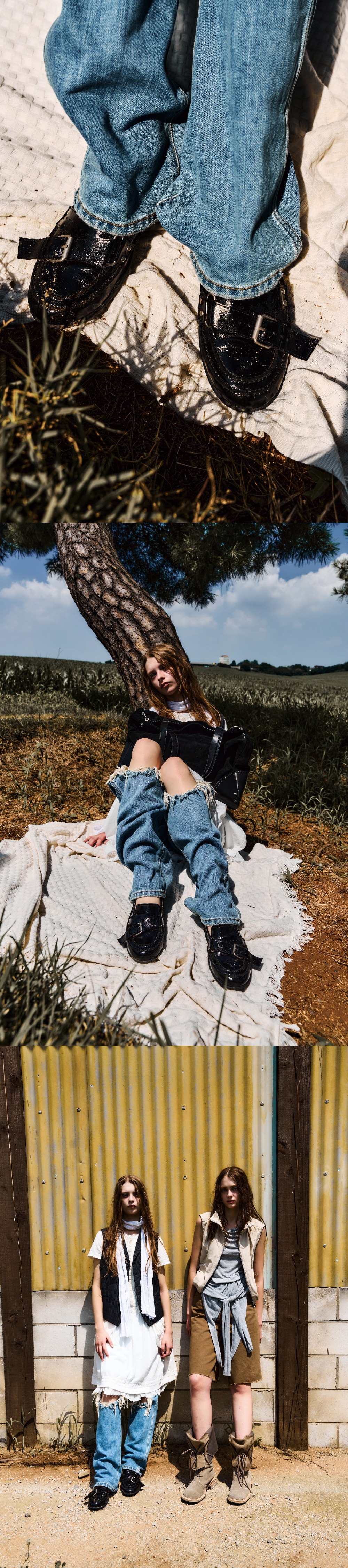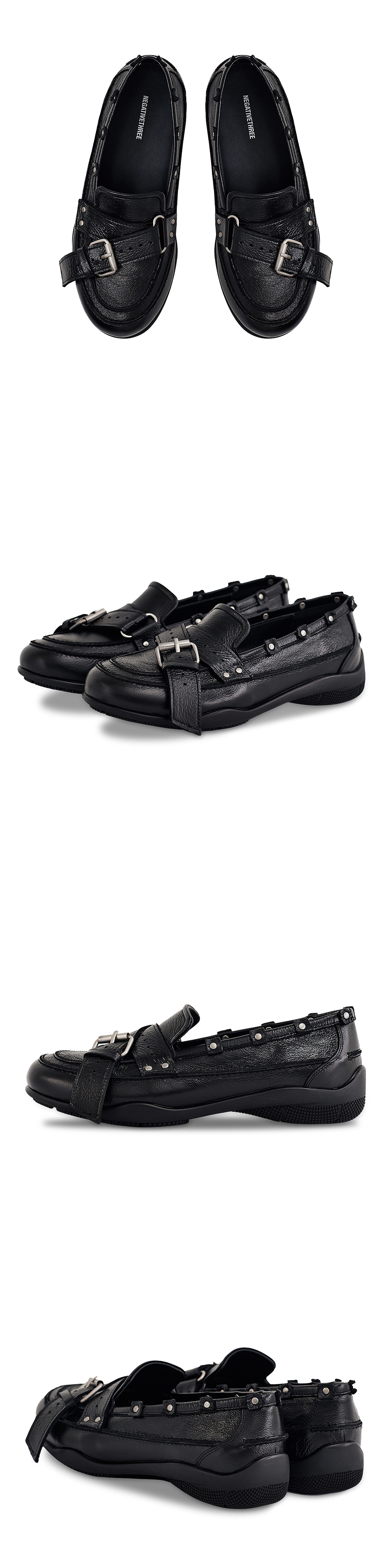 네거티브쓰리 벨티드 스터드 로퍼 폴리쉬드 블랙