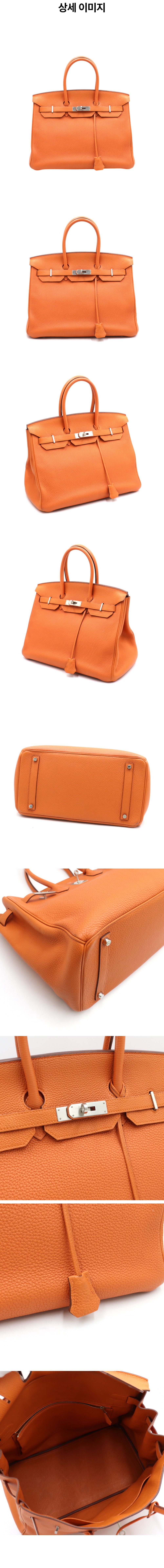 에르메스 토고 오렌지 은장 하드웨어 벌킨 35 여성 토트백 aa48334