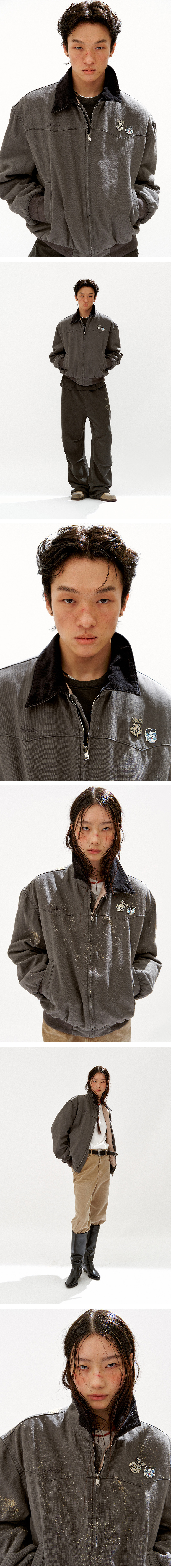가먼트 다잉으로 빈티지한 색감이 돋보이는 데님 워크 자켓입니다. 코듀로이 카라 배색과 시보리 디테일이 포인트를 더했으며, 퀼팅 누빔안감으로 보온성을 높였습니다. VERDY 공식 협업 PIN SET가 함께 구성된 디자인으로 취향에 따라 다양한 연출이 가능한 아이템입니다.