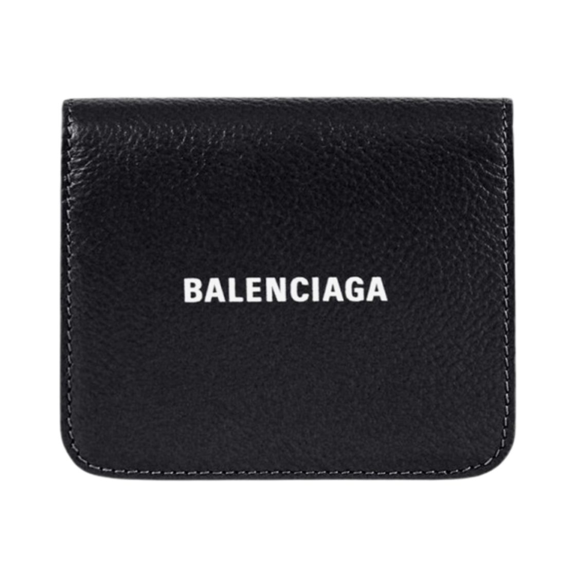 Balenciaga Grained Calfskin Cash Flap Coin and Card Holder Black