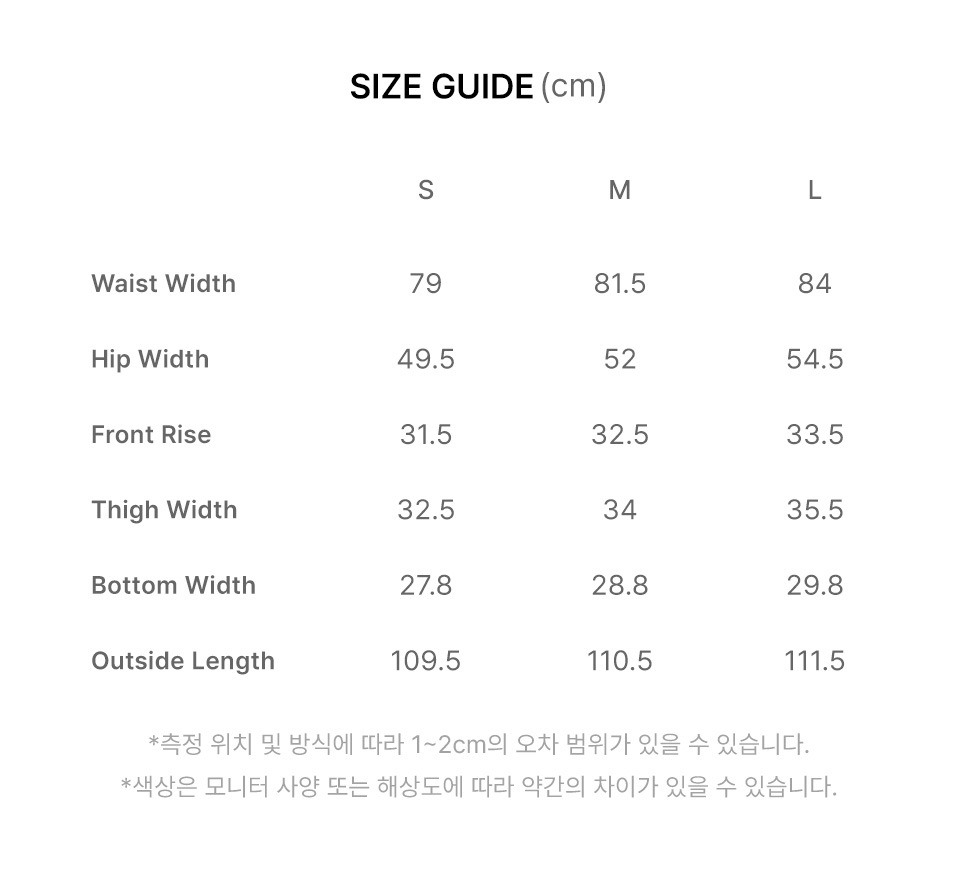 | 허리단면 | 힙단면 | 밑위 | 허벅지단면 | 밑단단면 | 총기장 |