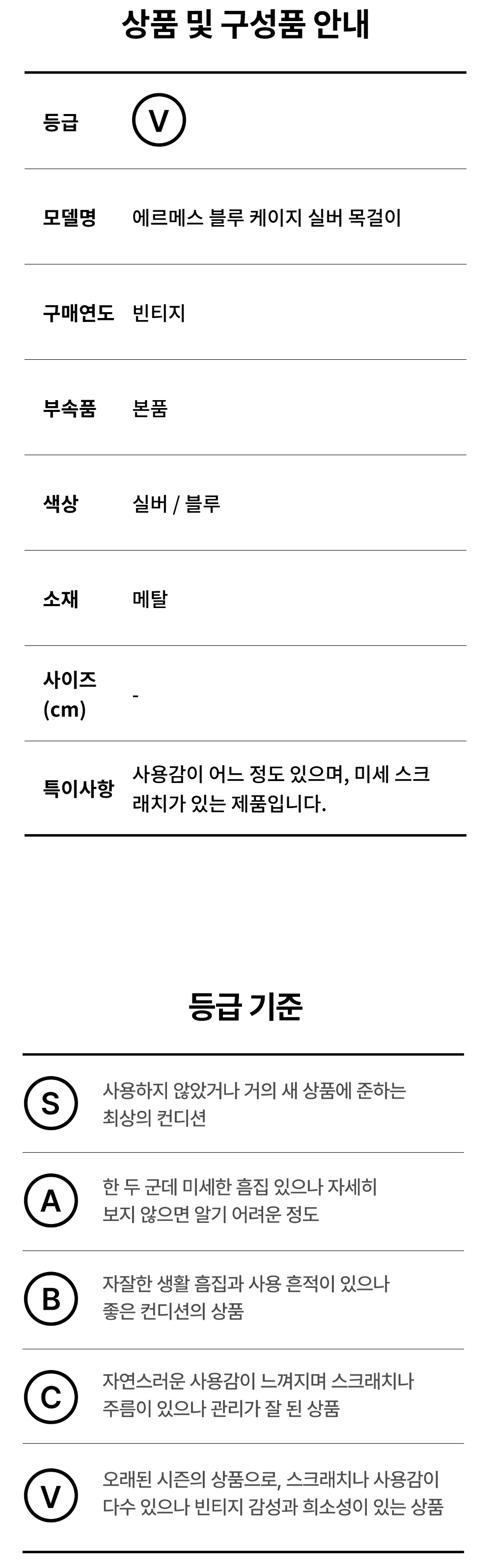 에르메스 블루 케이지 실버 목걸이 A-B34448