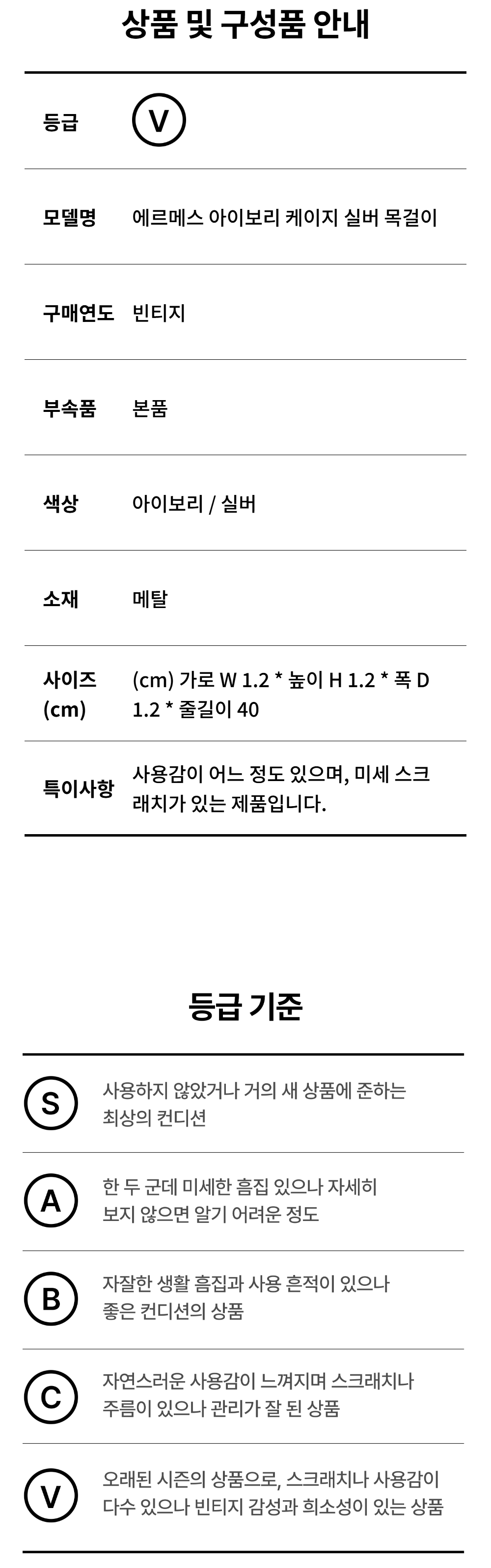 에르메스 아이보리 케이지 실버 목걸이 A-B38258