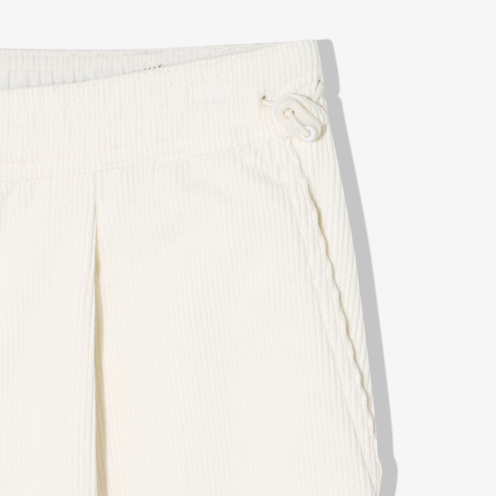 세련된 골지 텍스처의 코듀로이 소재를 사용하였습니다. 몸에 닿는 촉감이 포근하고 부드러우며, 탄탄한 조직감으로 오랫동안 새것처럼 입을 수 있습니다.트렌디하면서도 체형 커버에 용이한 와이드 핏을 적용하였습니다. 적당히 여유 있으면서도 자연스럽게 떨어지는 와이드핏 실루엣입니다. 캐주얼한 코디에서부터 스트릿 스타일까지 매일매일 다채로운 스타일링 옵션을 제공합니다.허리 부분 사이드 스트링 포인트가 유니크한 매력을 더해주며, 체형에 맞게 허리 둘레를 조절할 수 있어 편리합니다. 지퍼 플라이가 적용된 팬츠 스타일로, 깔끔하고 클래식한 무드를 연출해주며 데일리로 착용하기에 손색 없는 스타일입니다.