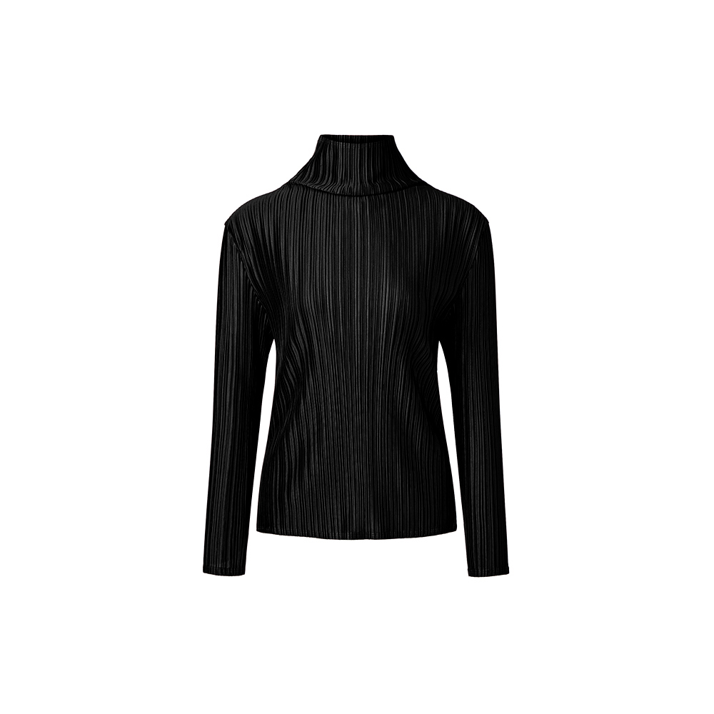 몽플리쎄 여성 하이넥 긴소매 폴라 플리츠 티셔츠 블랙