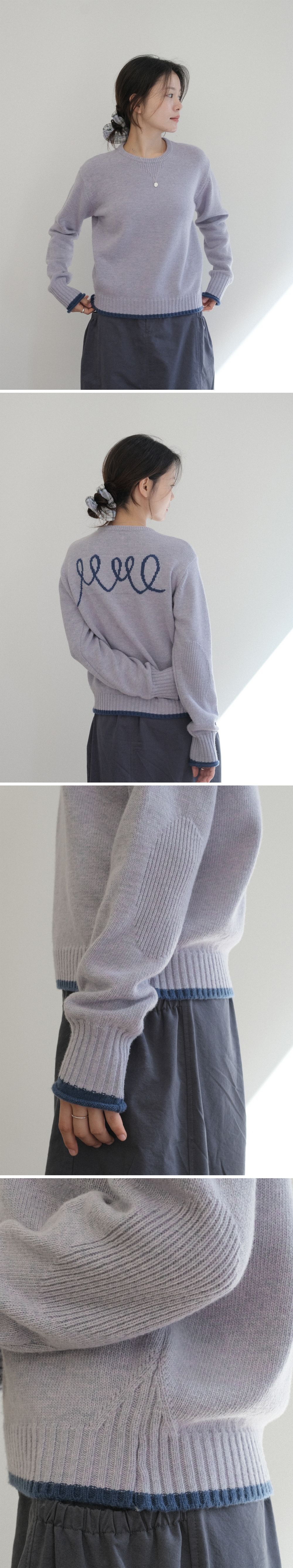 - 미들게이지(middle gauge)로 밀도 높게 제작되어 적당한 두께감과 보온성이 좋은 니트 - 맨살에 닿아도 까끌 거림이 적은 부드러운 터치감 - 여유 있는 소매 기장감과 적당한 길이의 세미 크롭 기장 - 유행에 민감하지 않은 자연스럽고 유연한 핏 - 가을, 겨울, 봄까지 입기 좋은 두께감 - 팔꿈치와 넥 조직감, 소매와 밑단, 뒤 라인 로고 디테일 - 라벤더에 네이비 배색 포인트 let's walk slowly. 색상 라벤더 소재 캐시미어 5%, 메리노 울 25%, 캐시 나일론 55%, 소프트 폴리 15% 사이즈(cm) 총장 55 / 가슴 52 / 밑단 40 / 소매 61