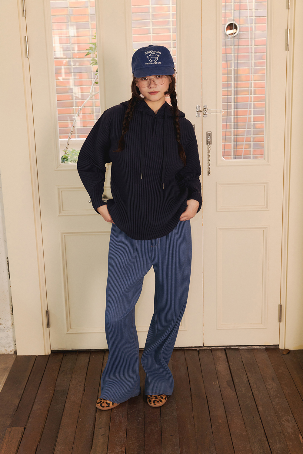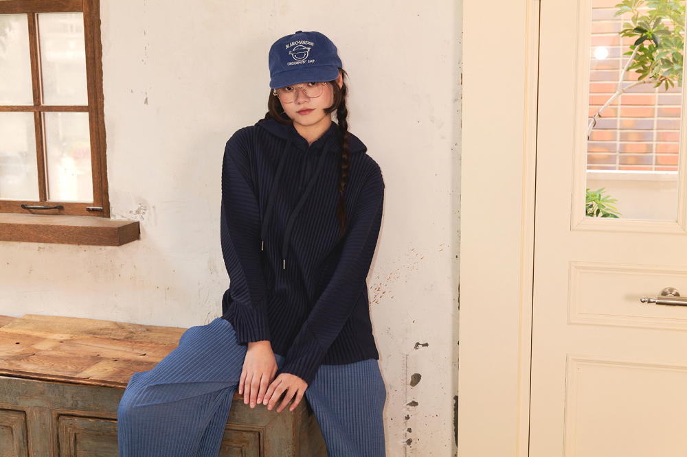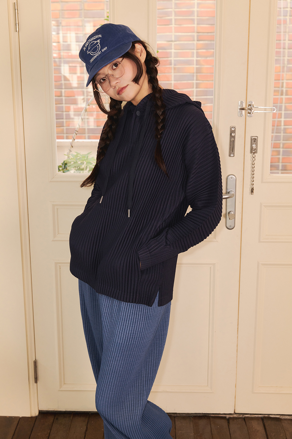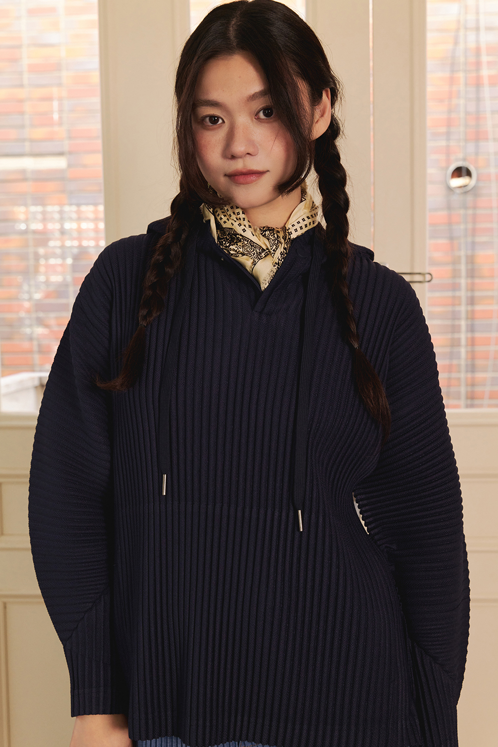 몽플리쎄 여성[공용] 컴포트 플리츠 후드 티셔츠 네이비