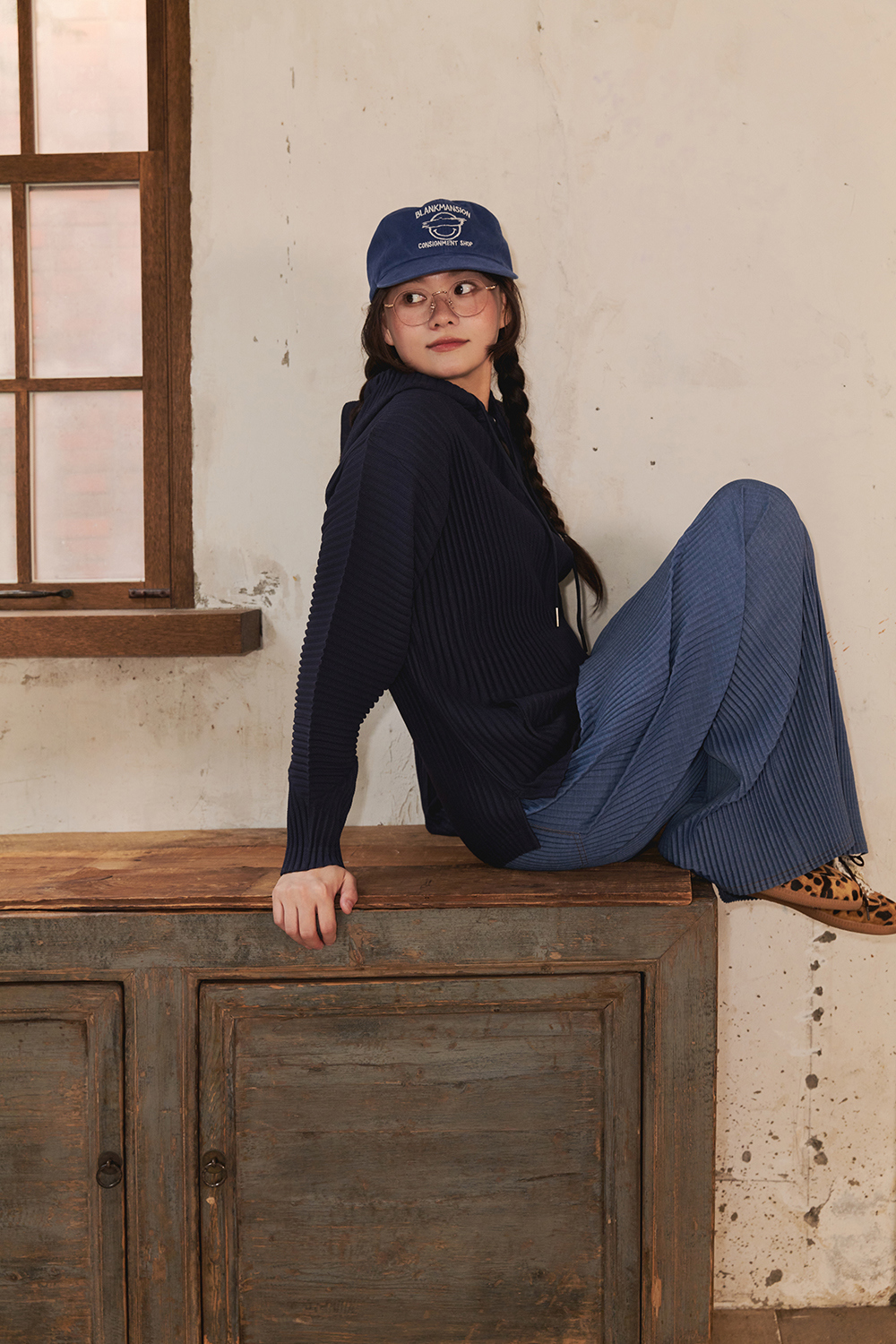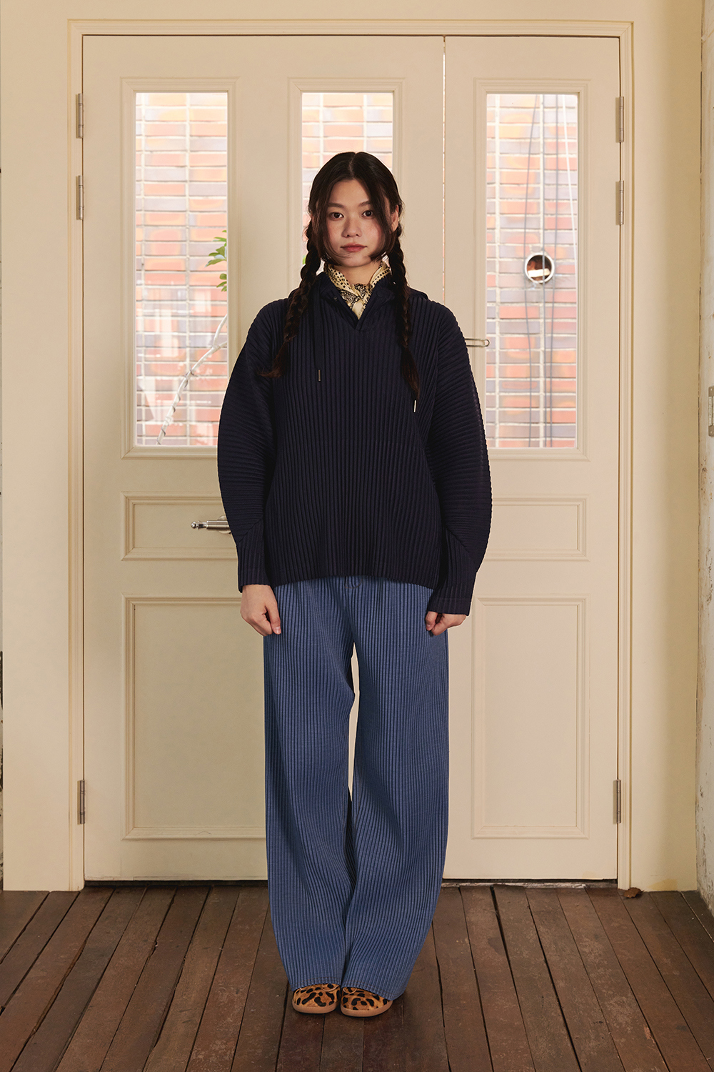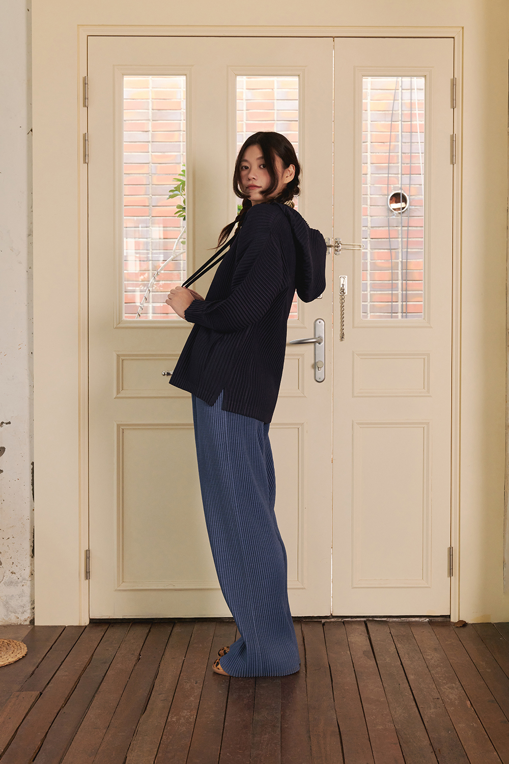 몽플리쎄 여성[공용] 컴포트 플리츠 후드 티셔츠 네이비