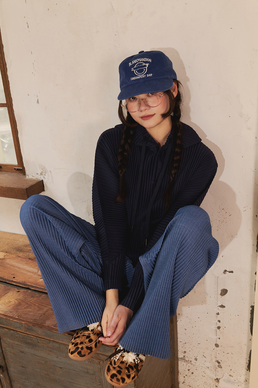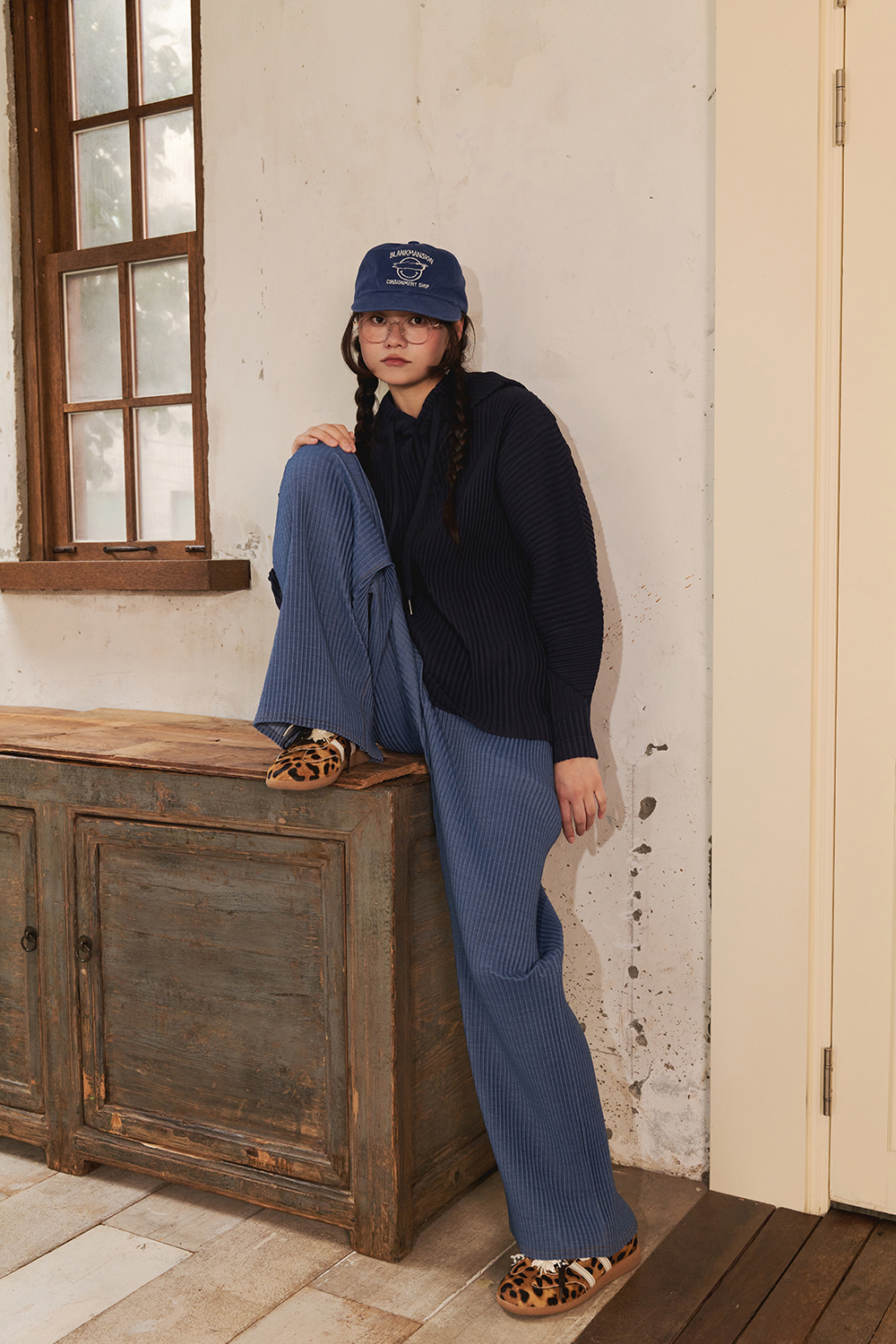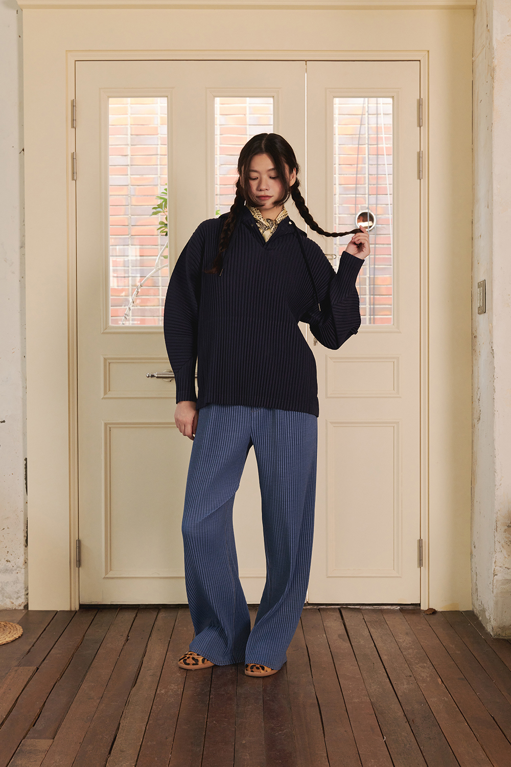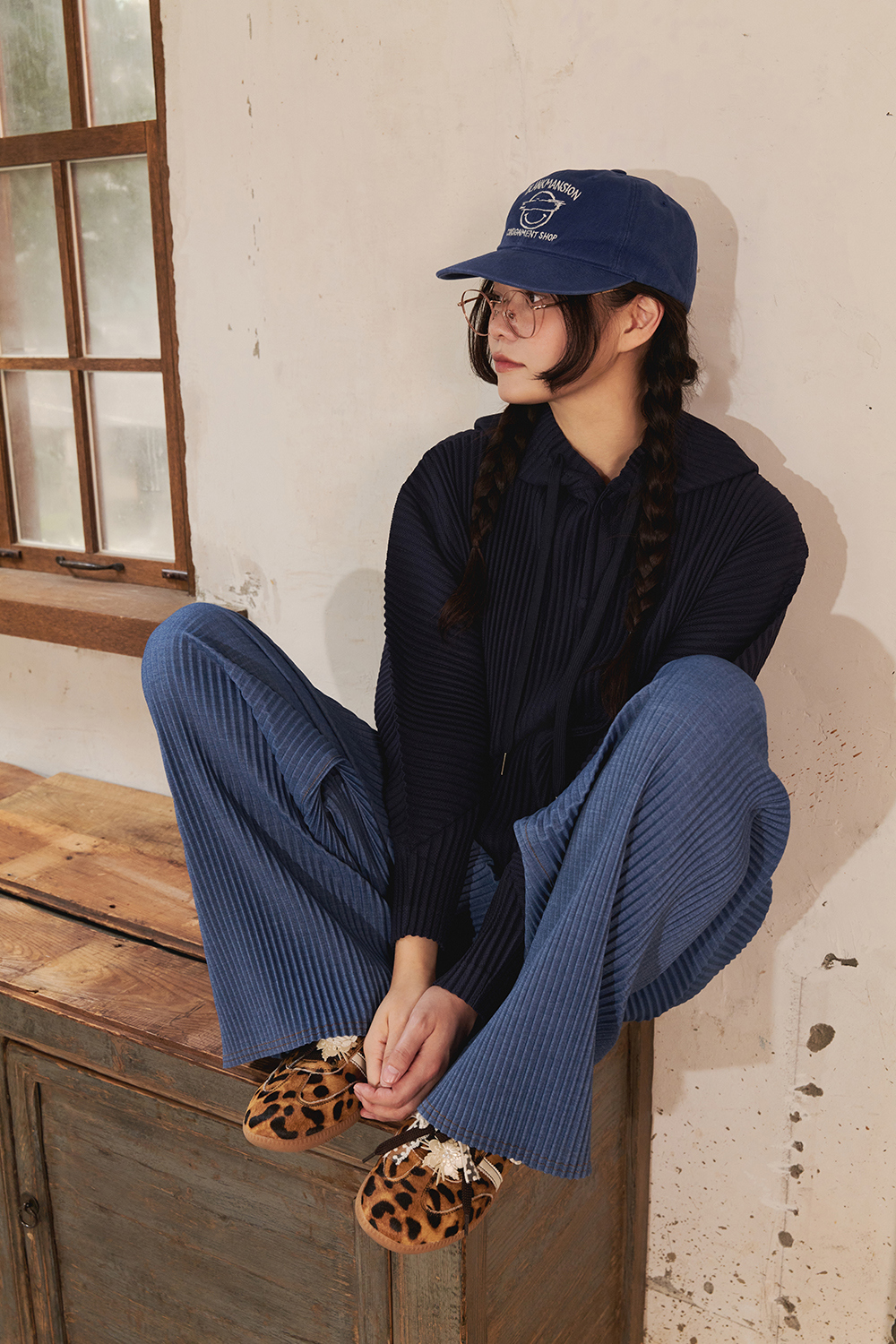몽플리쎄 여성[공용] 컴포트 플리츠 후드 티셔츠 네이비