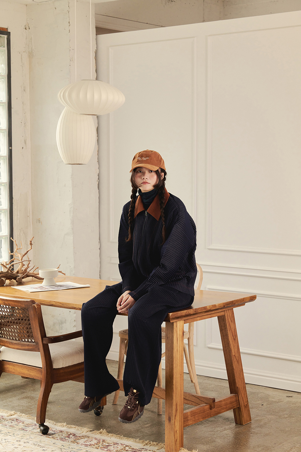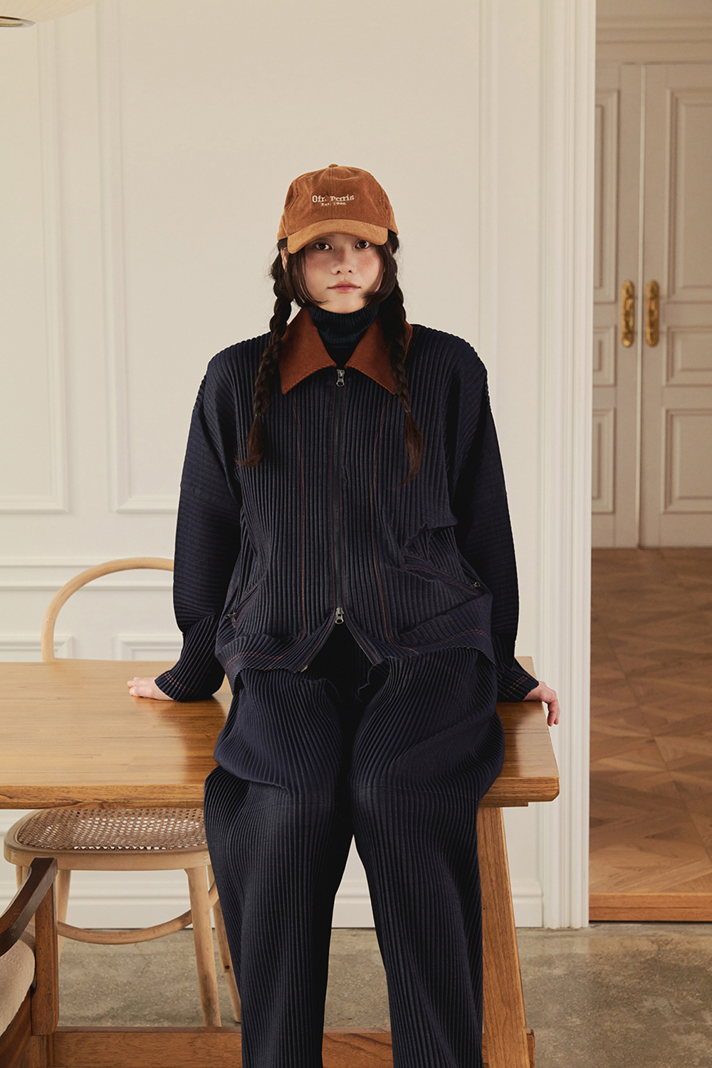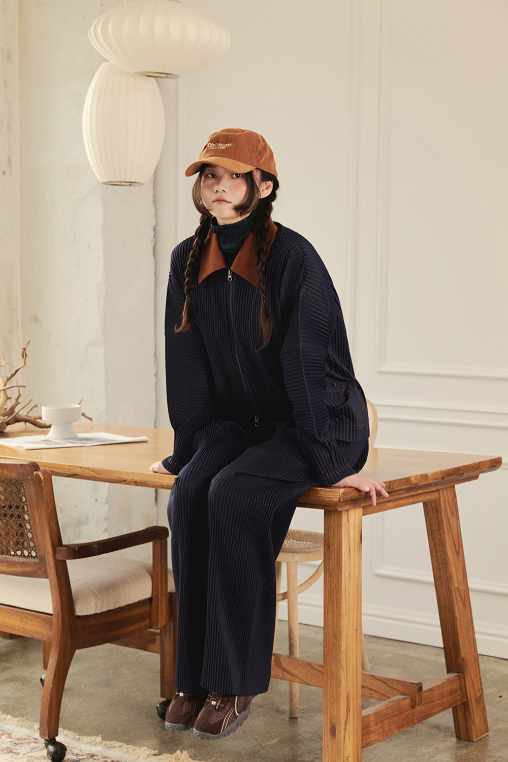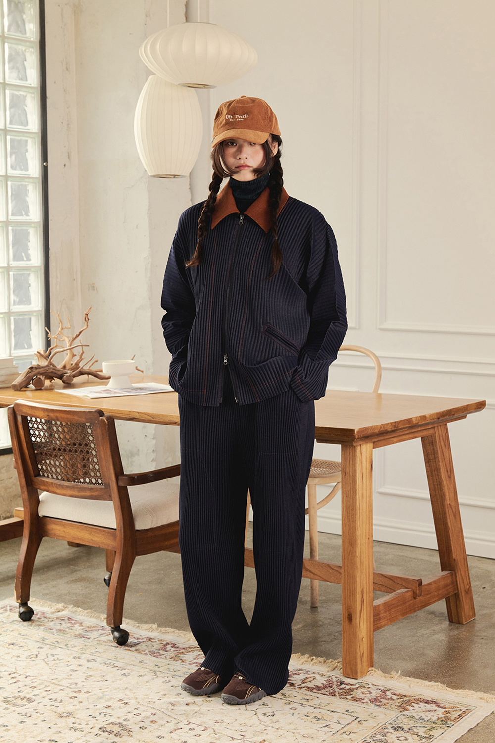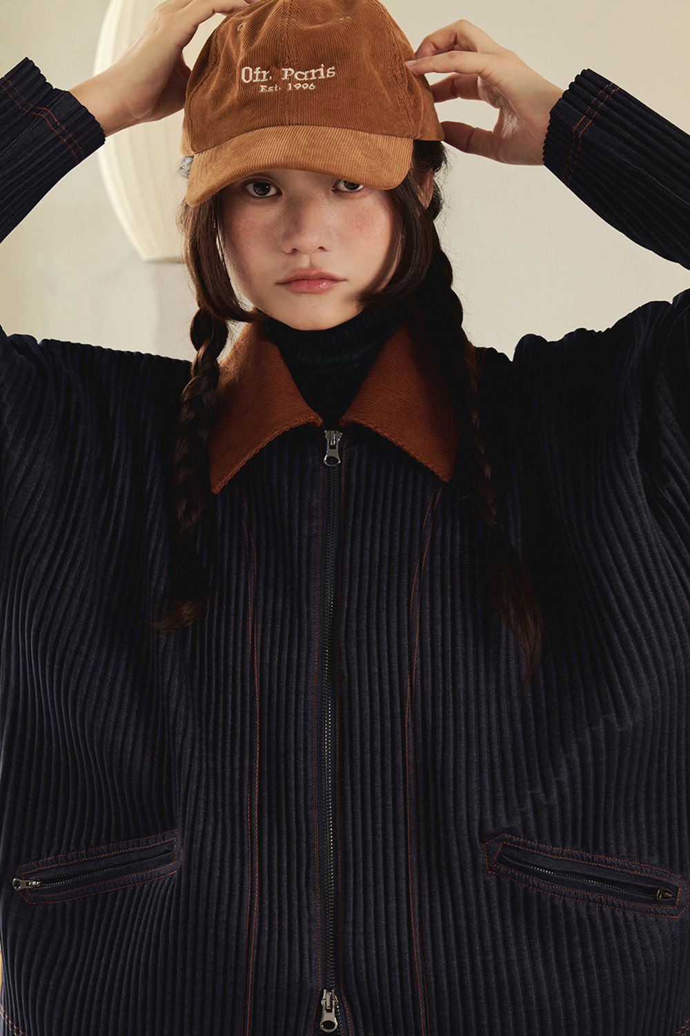 몽플리쎄 여성[공용] 코듀로이 카라배색 데님 보머 플리츠 자켓 네이비