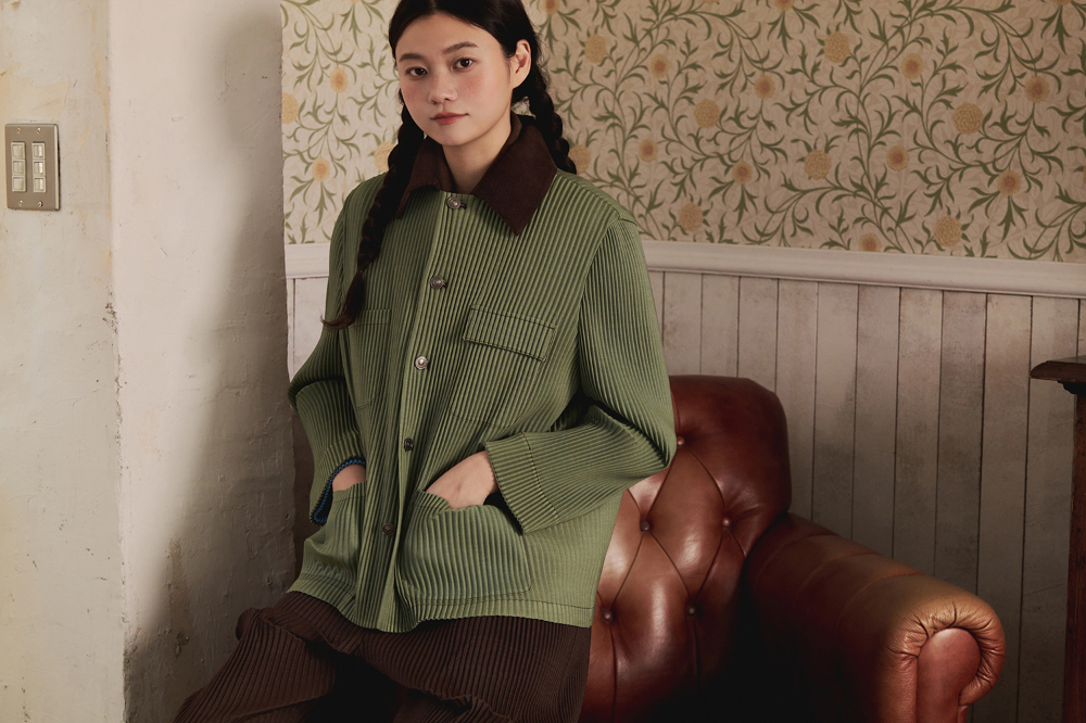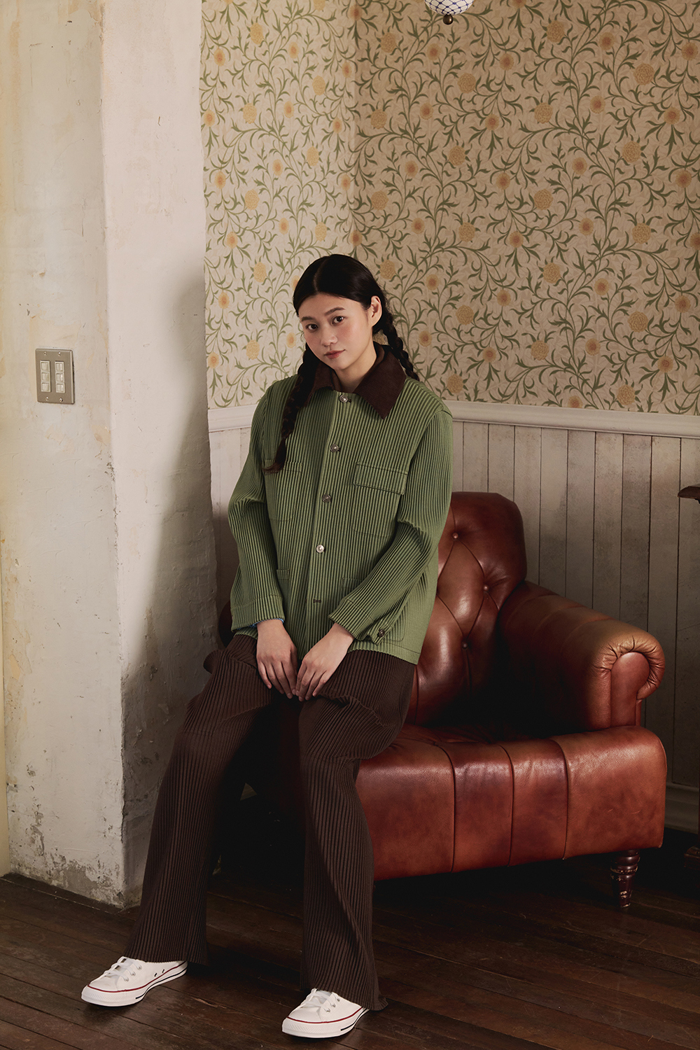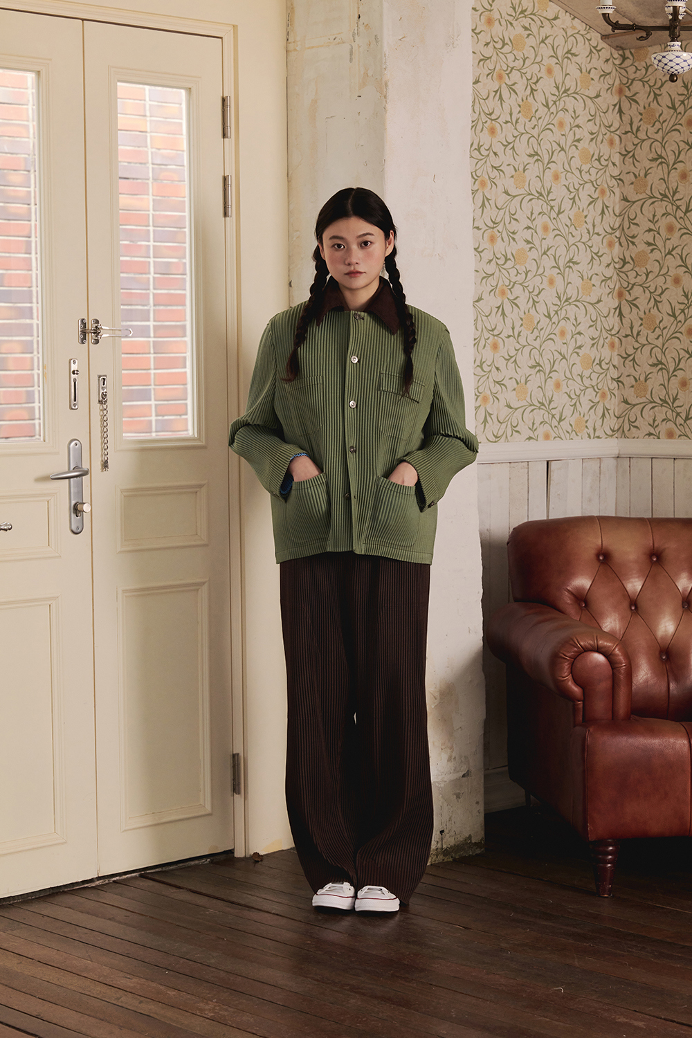 몽플리쎄 여성[공용] 코듀로이 카라배색 라이너 플리츠 워크 자켓 민트