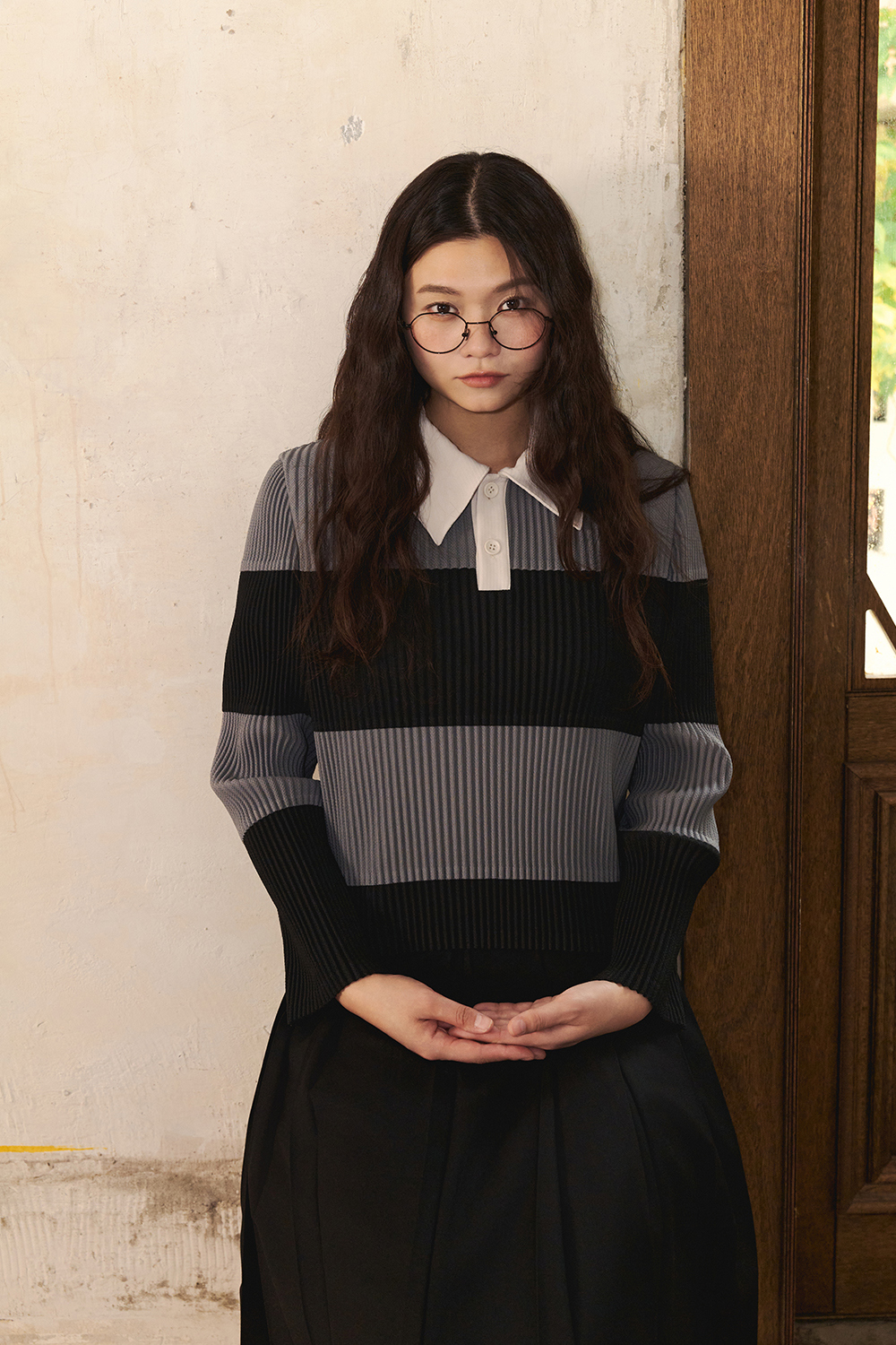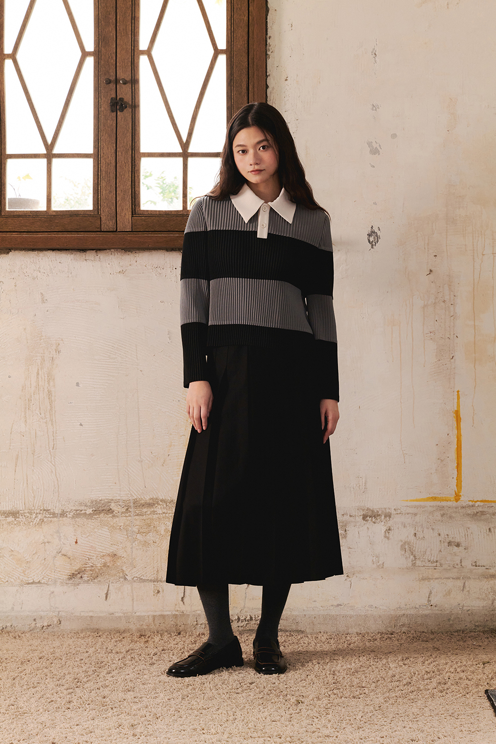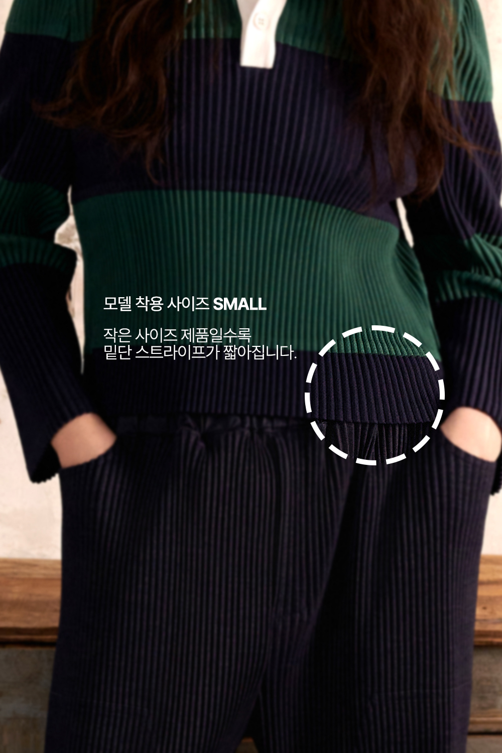 몽플리쎄 여성[공용] 플리츠 스트라이프 럭비 셔츠 블랙