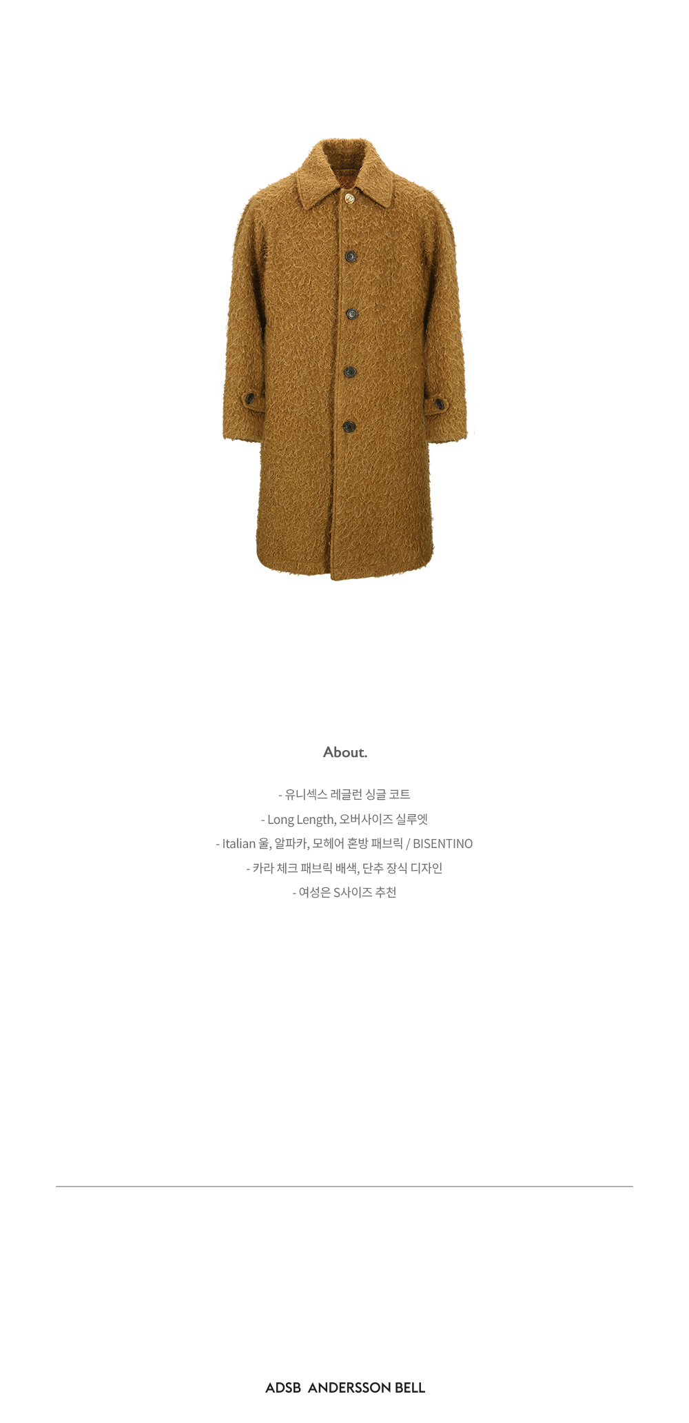 ADSB 앤더슨벨 유니섹스 카센티노 래글런 코트 브라운