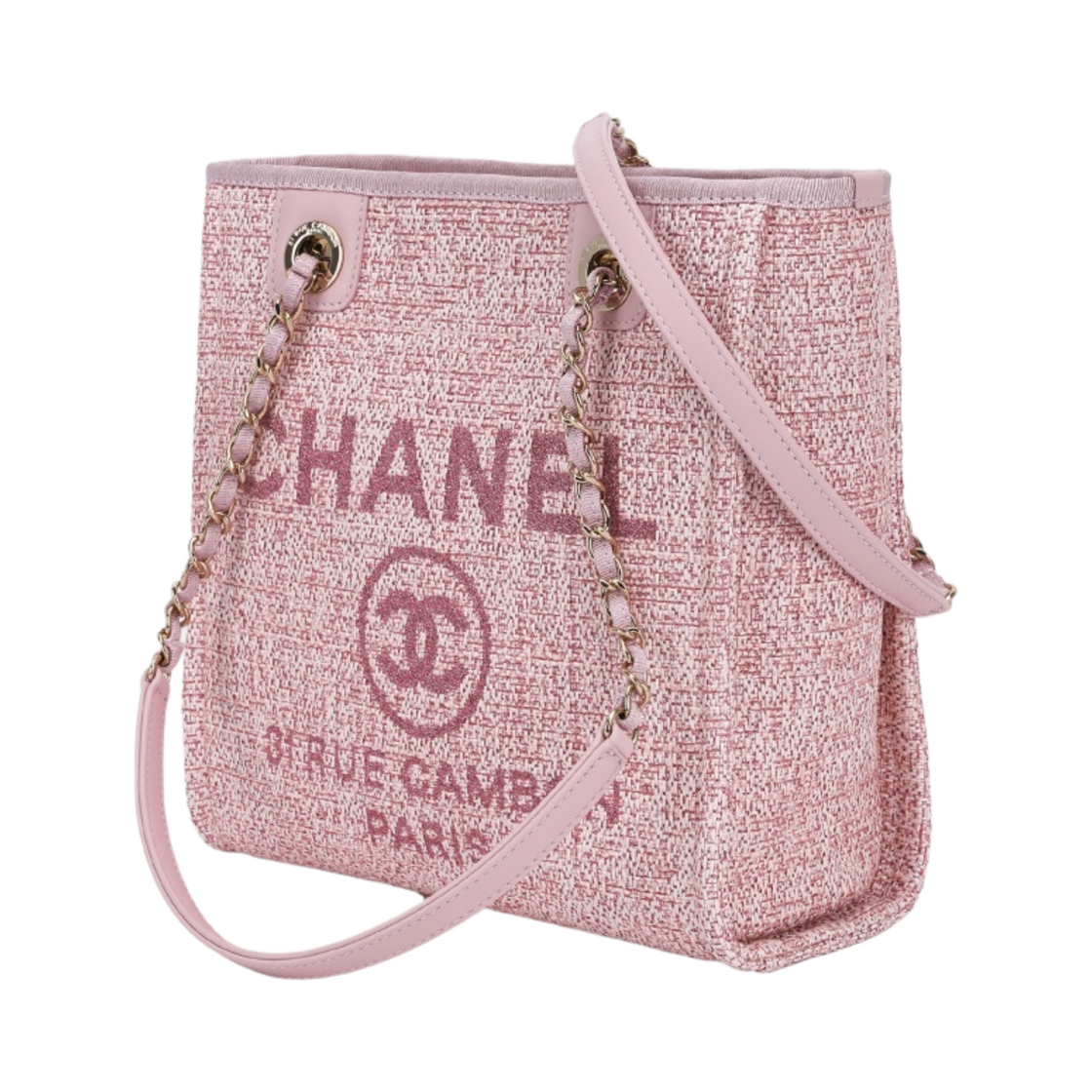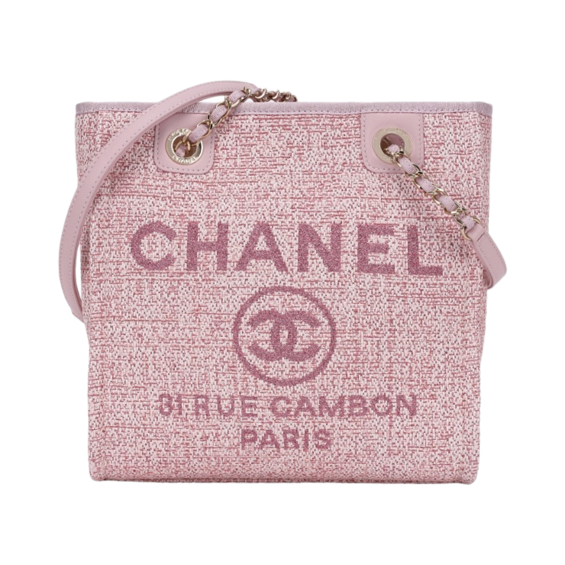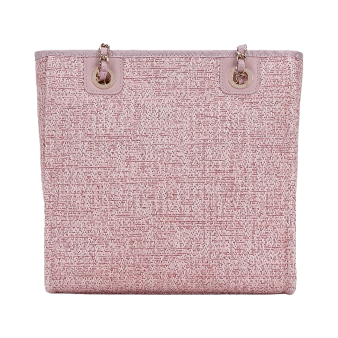 Chanel Small Shopping Bag Cotton Nylon Lurex Calfskin & Gold Pink