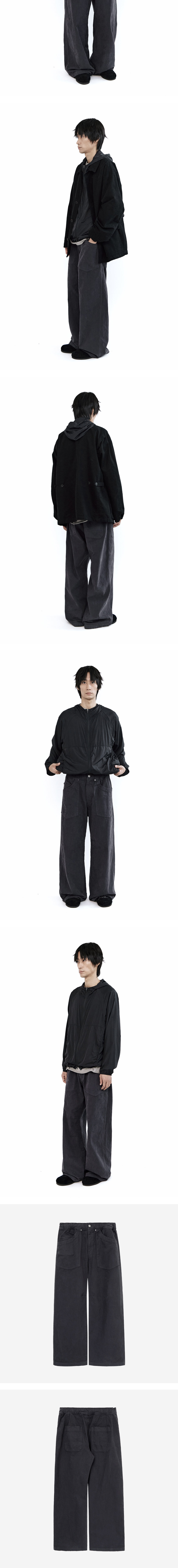 human baker pajama - charcoal, purple - 베이커 팬츠를 변형한 디자인 - 여유로운 실루엣 - 옅은 스트라이프 조직감의 코튼 트윌 원단 - 전면 지퍼 플라이 - 우측의 코인 포켓 디테일 - 후면 2개의 벨크로 포켓 - 허리 밴딩 & 스트링으로 편하게 착용 가능 *모델: 170 중반, 마른 체형 / 3사이즈 착용 *일반 체형 기준 - 170cm 초반 이하 2사이즈 권장 - 170cm 중반 3사이즈 권장 - 170cm 후반~180cm 초반 4사이즈 권장