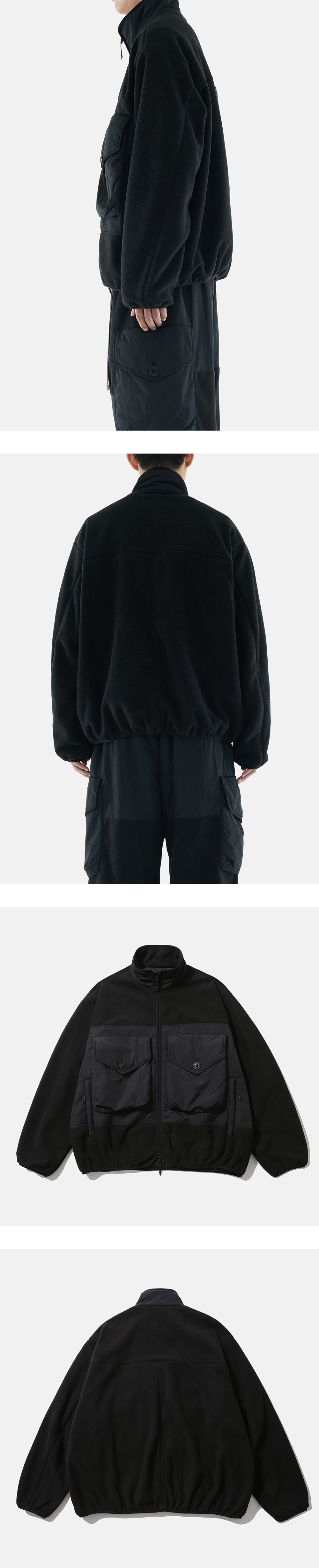 추운 날씨에 야외 활동을 위한 플리스 점퍼 · 넉넉한 느낌의 루즈한 실루엣. · 안팎이 모두 매끈하고 부드러운 푹신한 플리스 원단 사용. · 따뜻한 공기는 품고 습기는 발산하여 쾌적하고 보온성이 뛰어남. · 양방향 지퍼를 사용한 앞여밈 사양. · 사이드 지퍼 포켓과 전면부 패치 포켓 사양. · 주요 부위 우븐 패치로 내구성 강화. · 밑단과 소매단에 신축성 있는 바인딩 처리로 바람을 막아주고 핏을 고정해 줌.