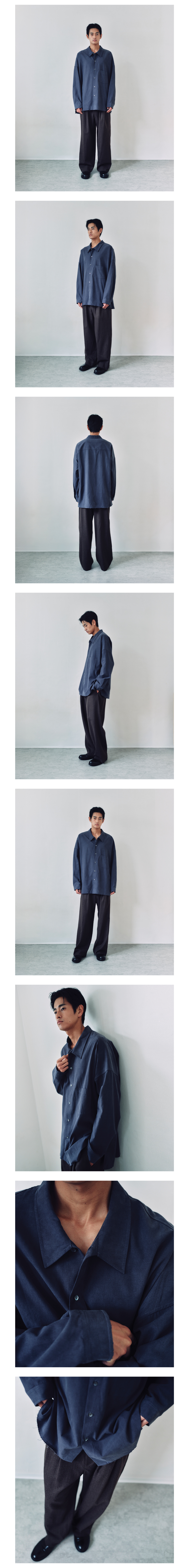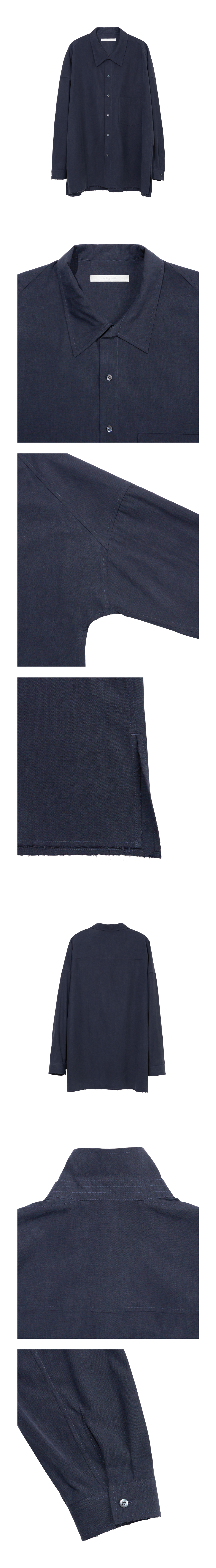 No. AY-SH04 여유 있는 실루엣의 돌먼 슬리브 셔츠입니다. TIPICO社의 텐셀 라이오셀 코튼 개버딘을 사용했으며, 텐셀의 실키함과 코튼의 안정감을 조화롭게 담아냈습니다. 표면에는 필브릴 가공을 더해 은은한 기모감과 깊이 있는 색감을 구현했습니다. 어깨선 없이 몸판과 소매가 자연스럽게 이어지는 돌먼 슬리브 구조로 제작하여, 전통적인 셋인과 달리 어깨에서 팔로 이어지는 곡선이 부드럽게 흐르며 입체적인 실루엣을 형성합니다. 착용 시 어깨선은 암홀 방향으로 자연스럽게 떨어지도록 설계해 부드러운 형태감을 완성했습니다. 클래식 셔츠의 느낌을 덜어내기 위해 넥 라인을 여유 있게 설정했고, 좌우 밑단 깊은 트임, 커프스·밑단 수작업 데미지 가공을 더해 캐주얼한 무드를 강조했습니다. MADE IN KOREA Model 185cm, 64kg Wearing Size 3 Color Faded Navy Material TENCEL™ Lyocell 65%, Cotton 35% (TIPICO社 Japanese Fabric)