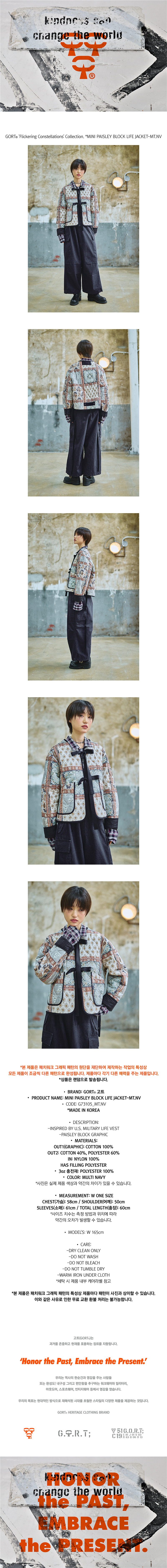 고트 미니 페이즐리 블록 라이프 자켓 멀티 네이비
