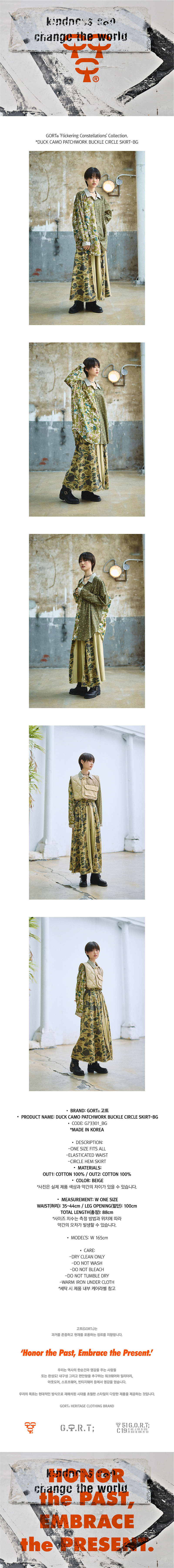 고트 덕 카모 패치워크 버클 서클 스커트 베이지