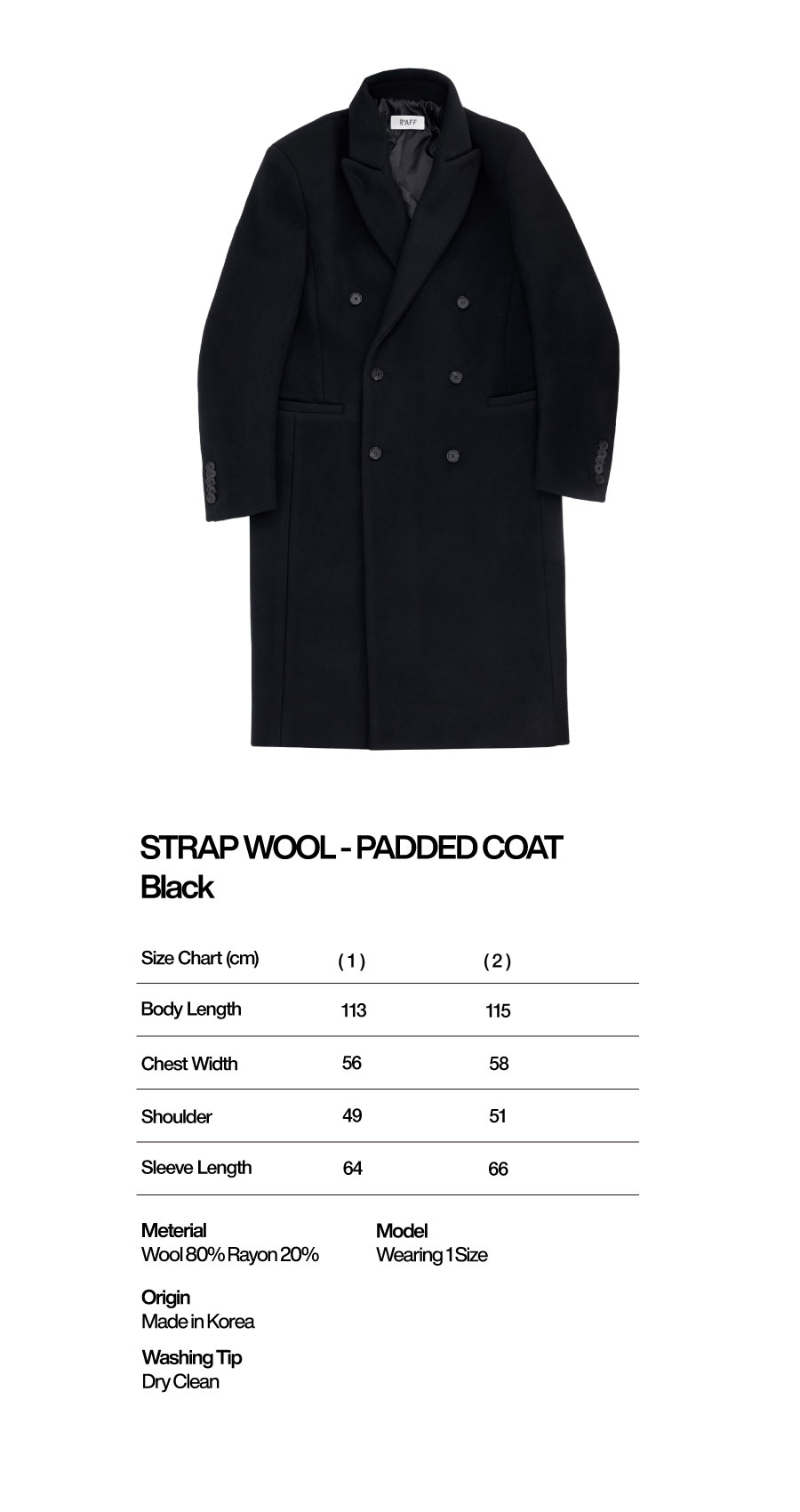 선데이오프클럽 스트랩 울 패디드 코트 블랙
