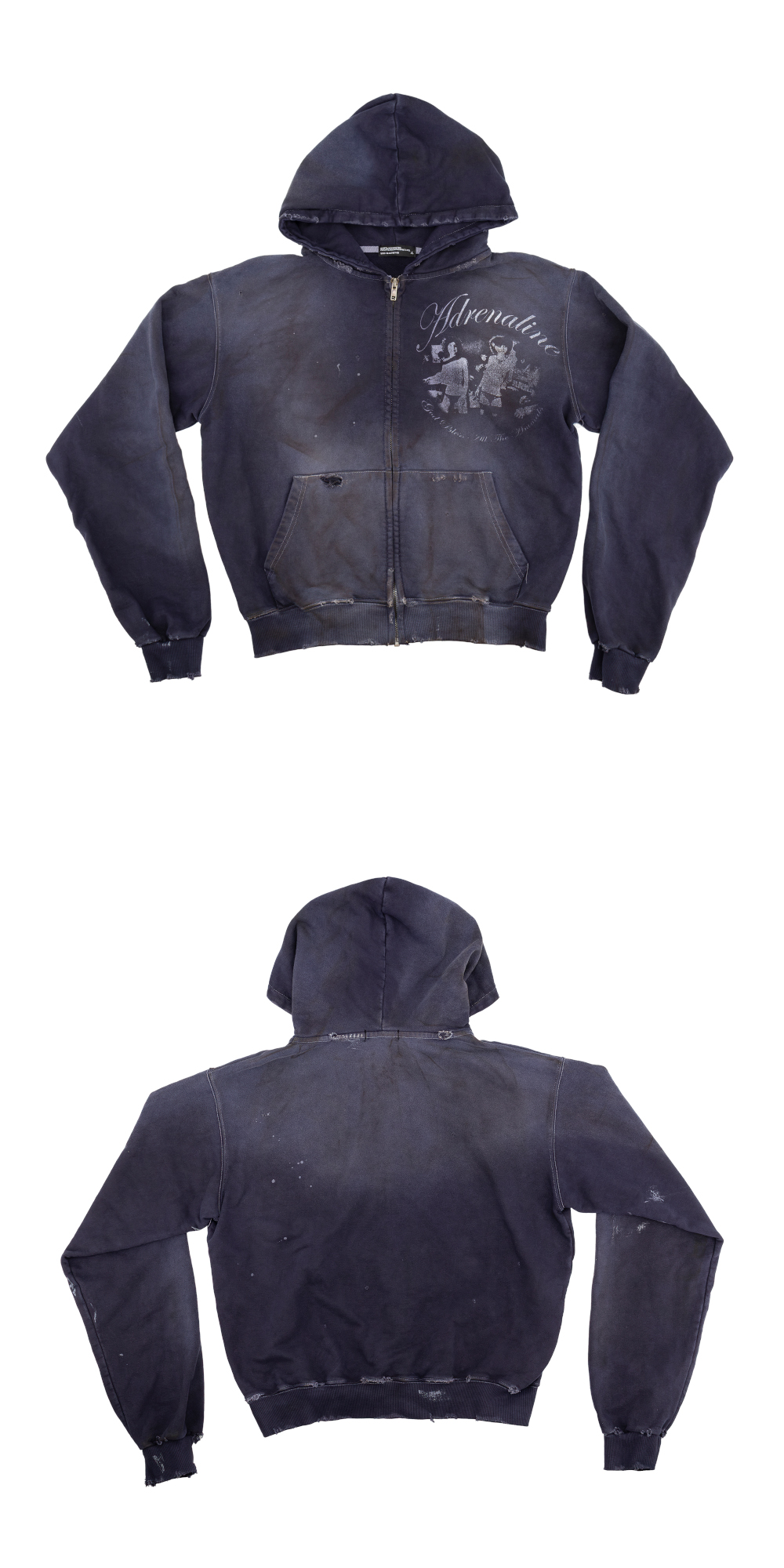 선데이오프클럽 아드레날린 트래시드 집 후디 워시드 퍼플